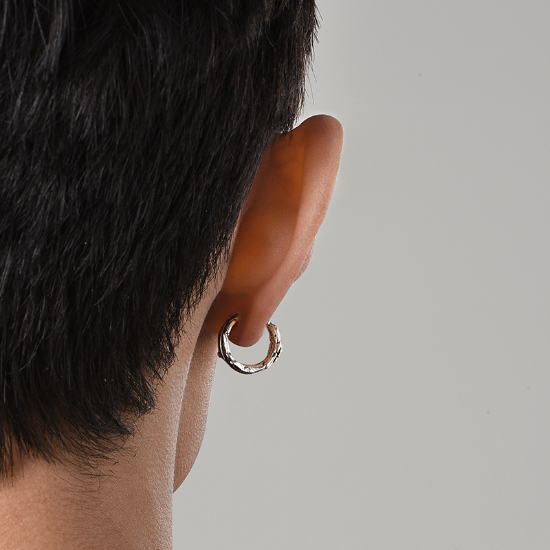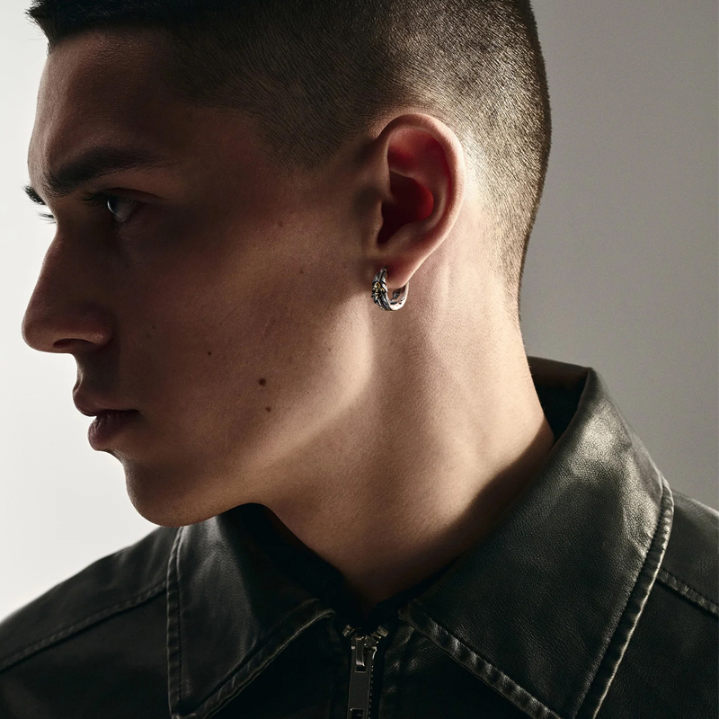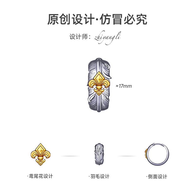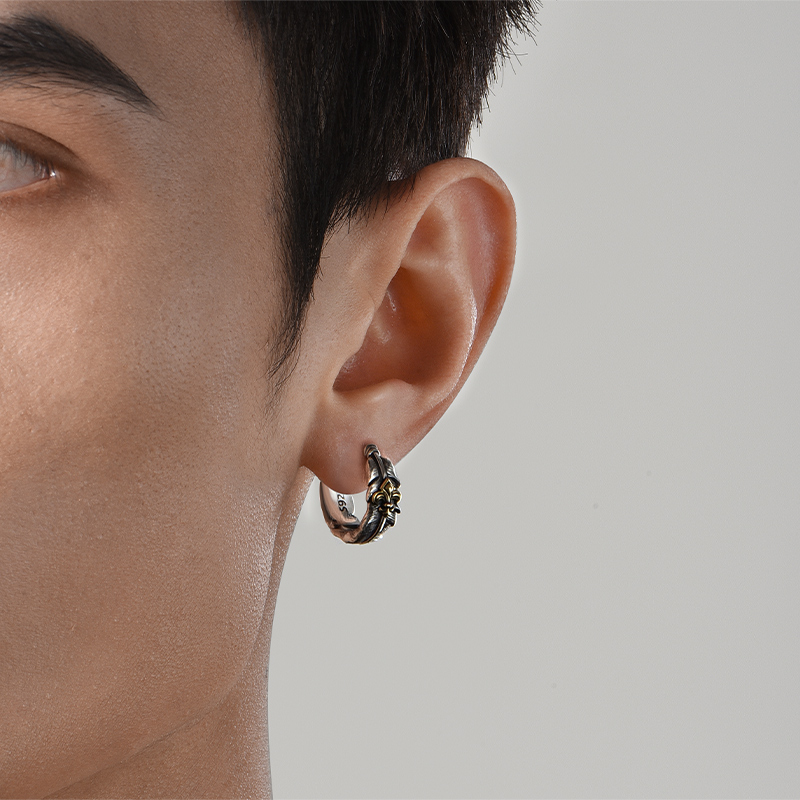纯银耳环男士原创羽毛鸢尾花耳圈