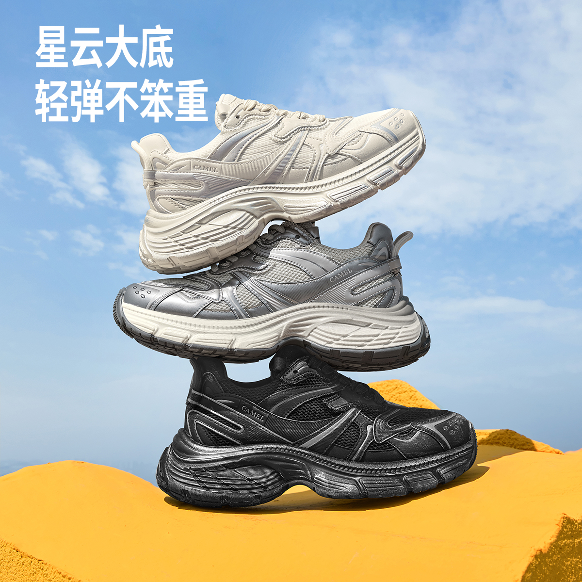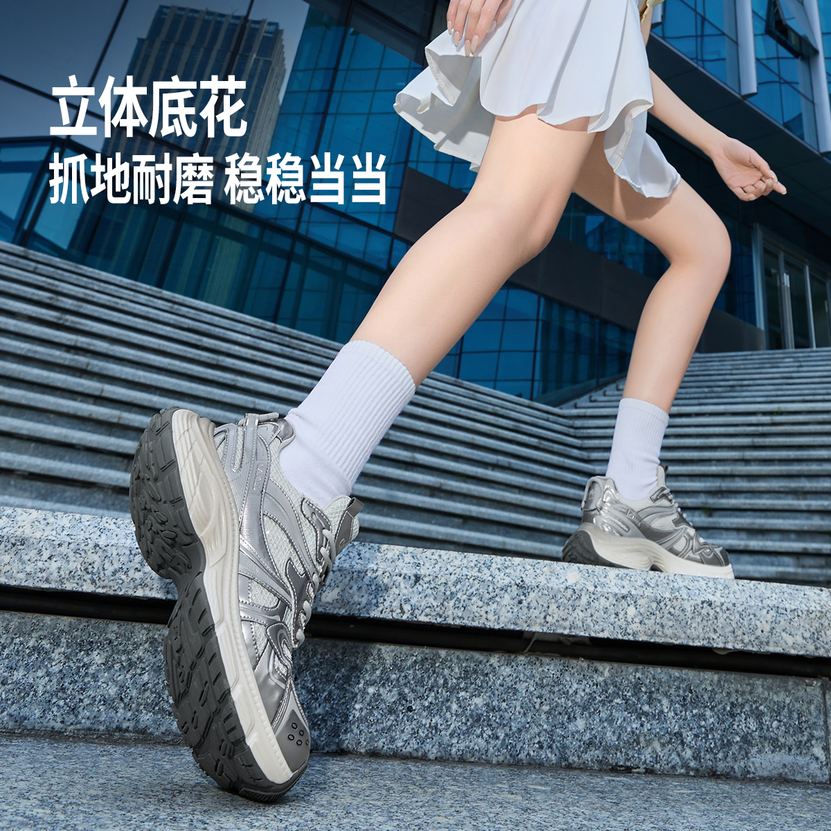 [耀月]骆驼女鞋2025秋冬加绒银色老爹鞋休闲新款增高厚底运动鞋女