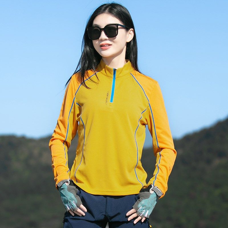 速干t恤女春秋季立领长袖打底衫户外运动L衫健身跑步登山徒步上衣