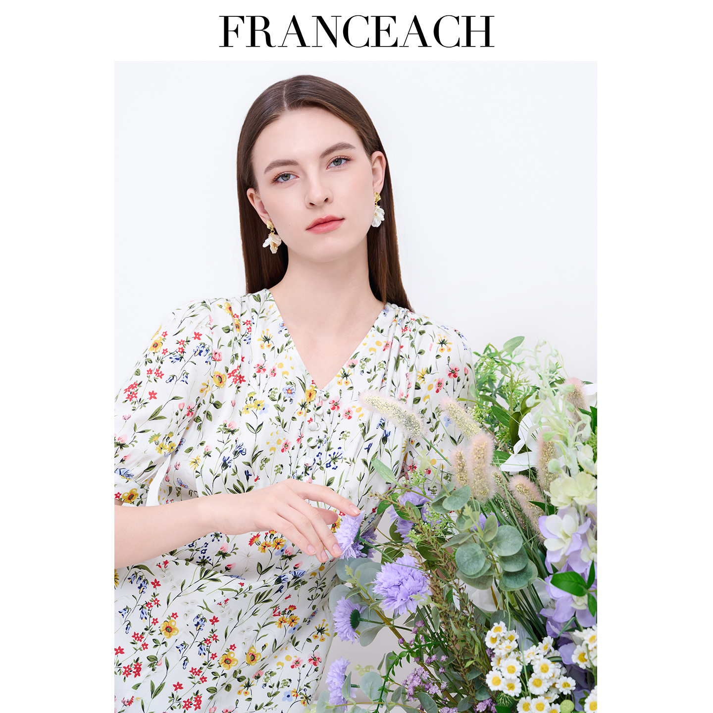 法涵意弛2025夏季新款V领印花真丝连衣裙女桑蚕丝优雅气质碎花裙