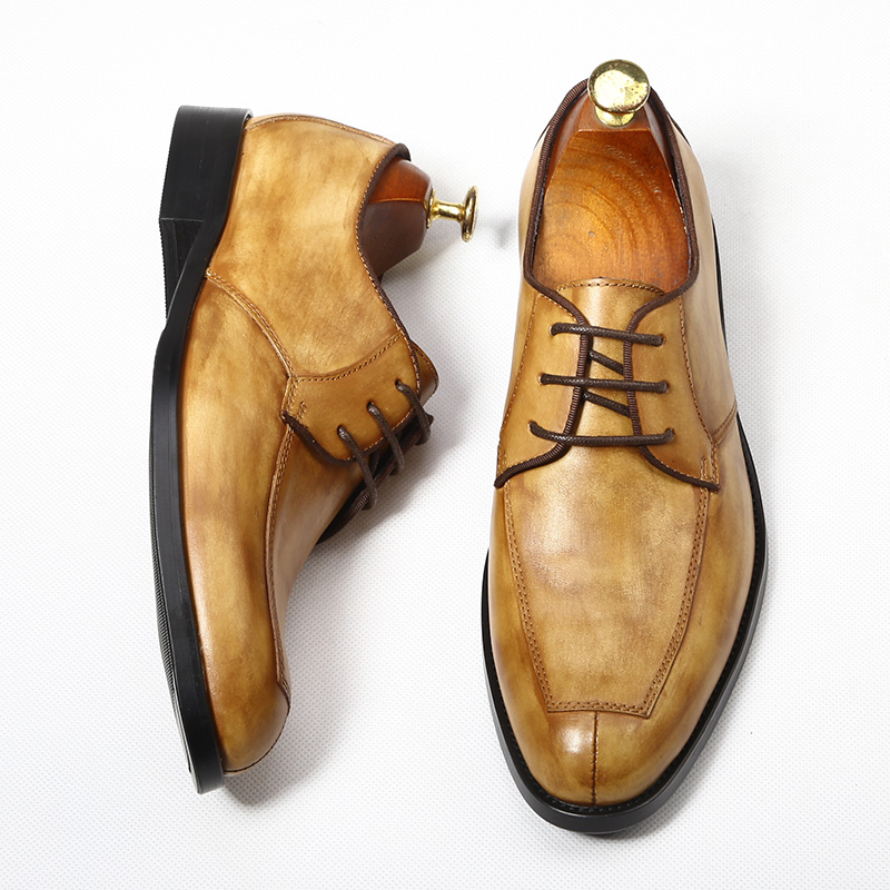 英伦风真皮复古手工做旧系带韩版男士潮流耐磨方头商务休闲皮鞋