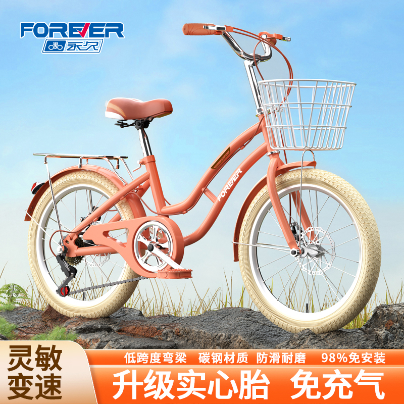 永久儿童自行车女孩8-12岁学生中大童碟刹脚踏单车实心胎变速单车
