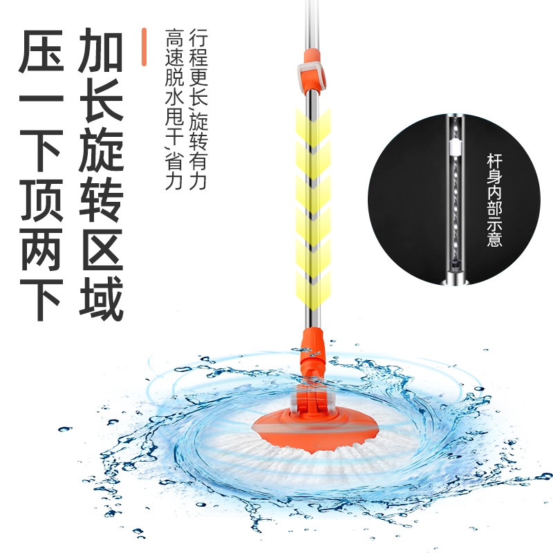大卫拖把杆旋转加粗不锈钢手压式一体杆吸水拖把头盘替换配件通用