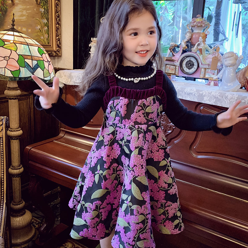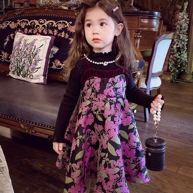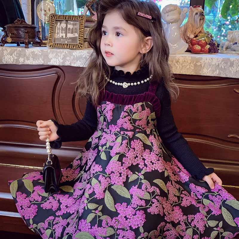 女童连衣裙冬装新款儿童法式茶歇碎花裙洋气小女孩吊带公主裙