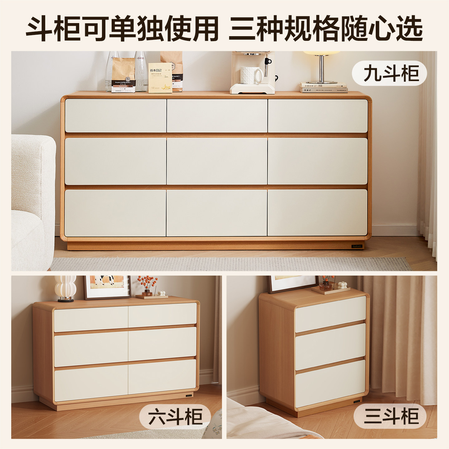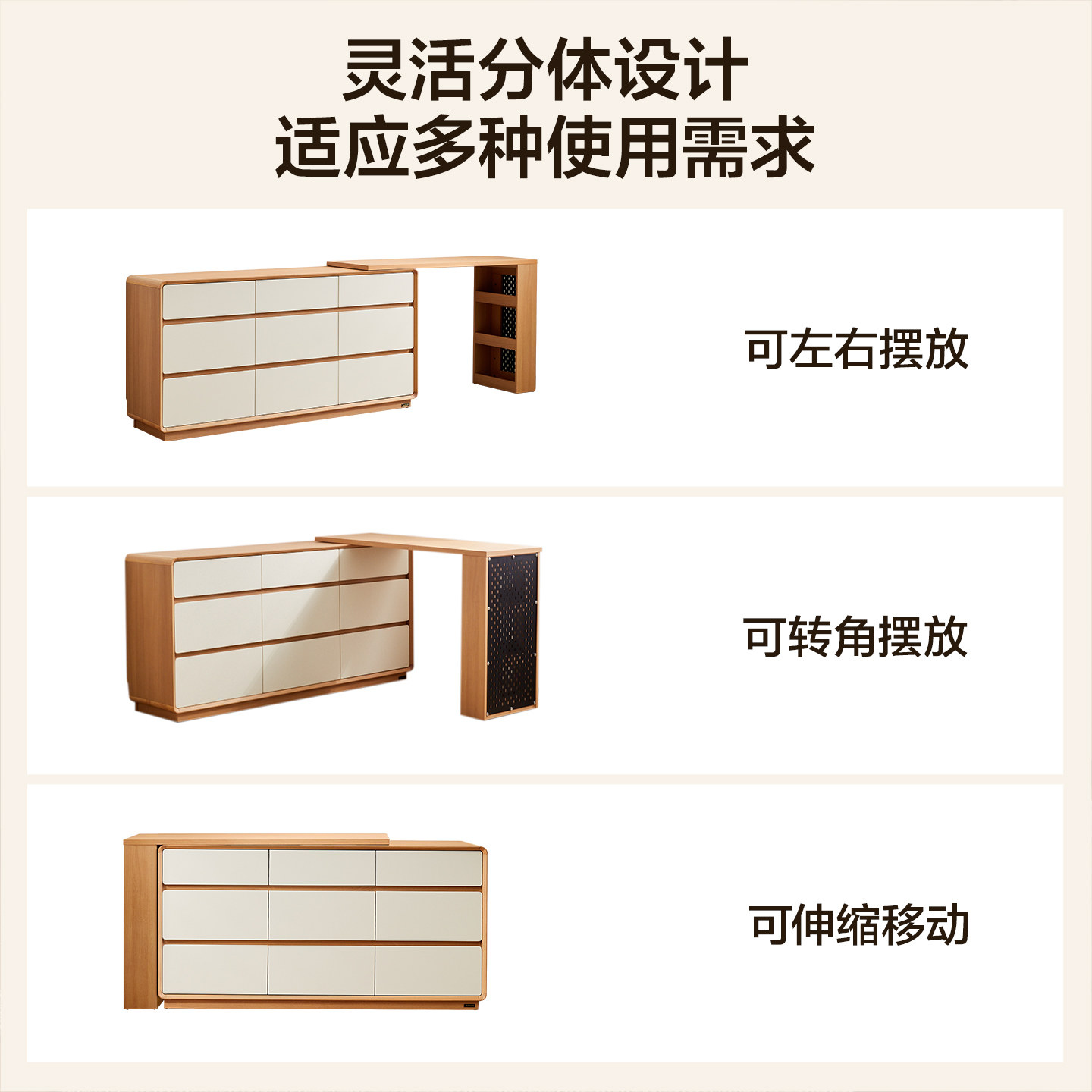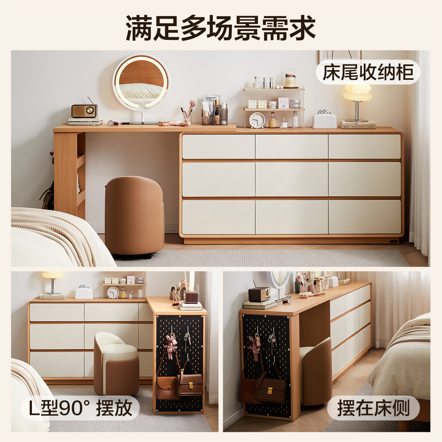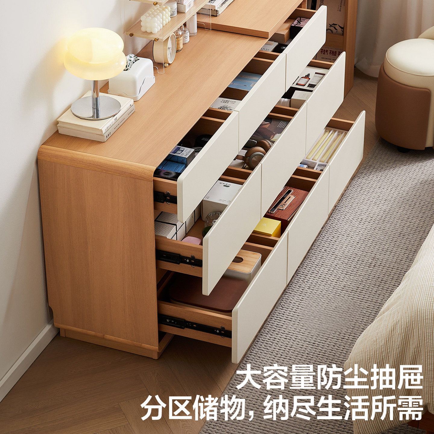 全友家居奶油原木风斗柜一体伸缩梳妆台卧室转角书桌收纳柜化妆桌