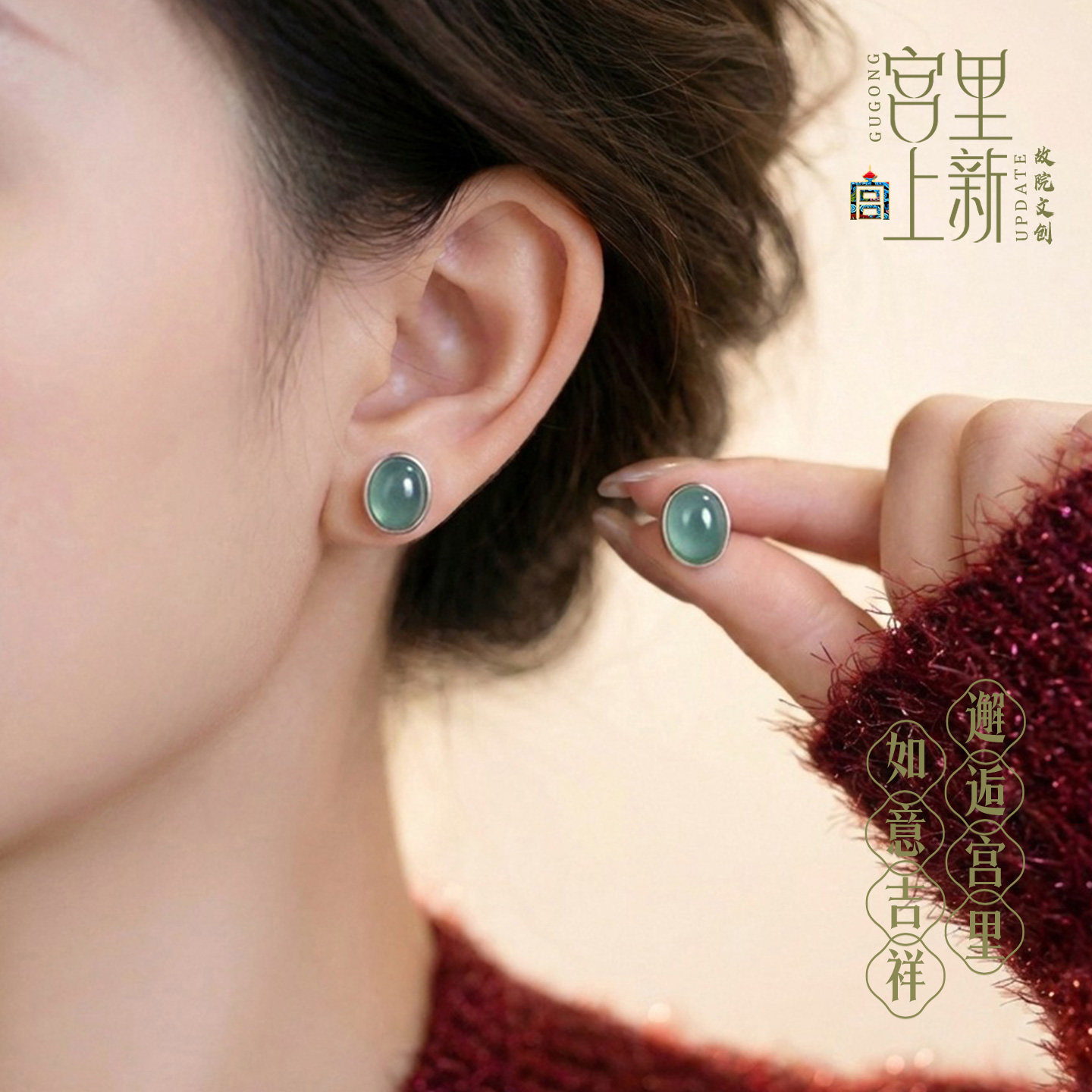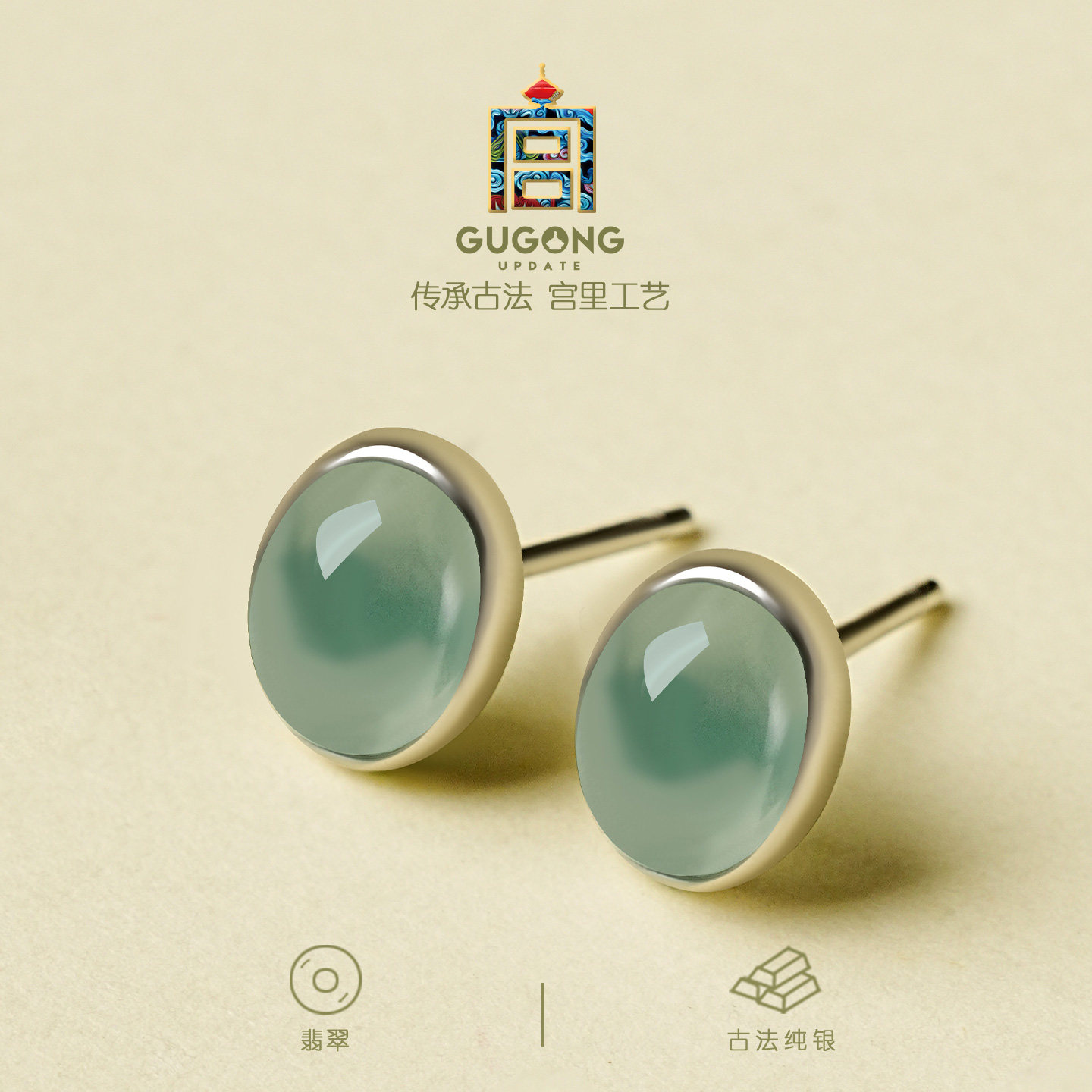 宫里上新翡翠耳钉女款纯银天然宝石耳饰养耳洞耳环生日礼物送妈妈