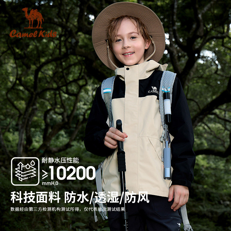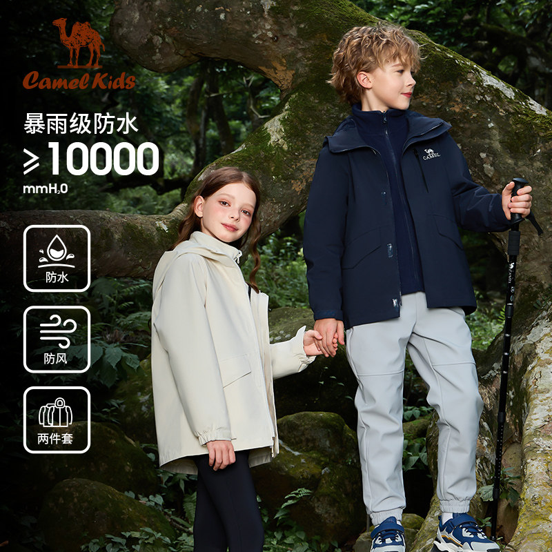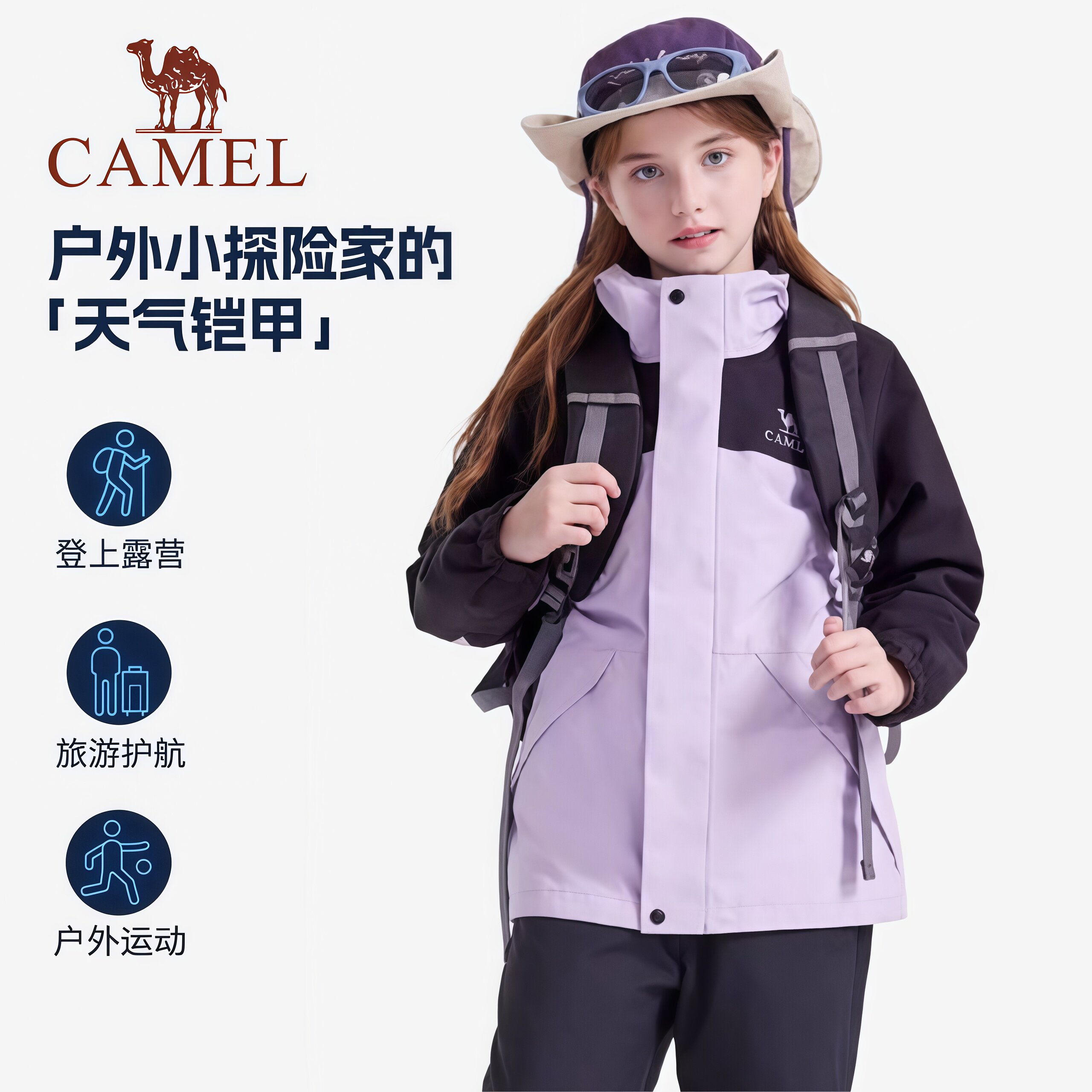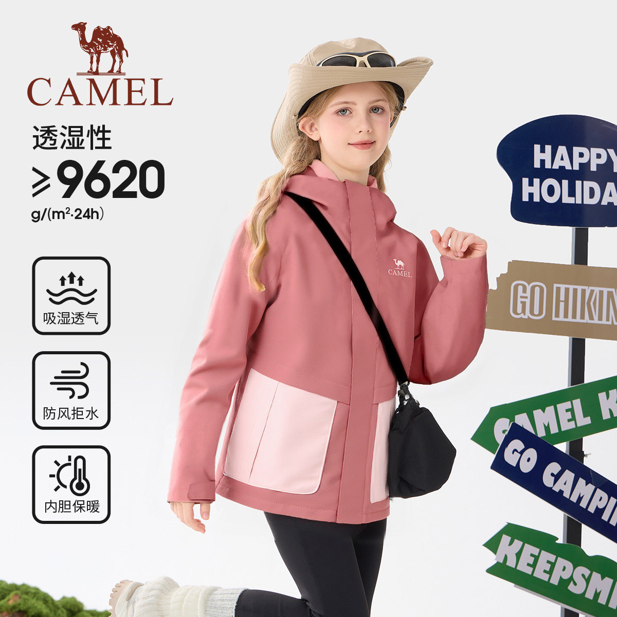 骆驼童装女童冲锋衣秋冬三合一防风防水男童三防服大童休闲外套