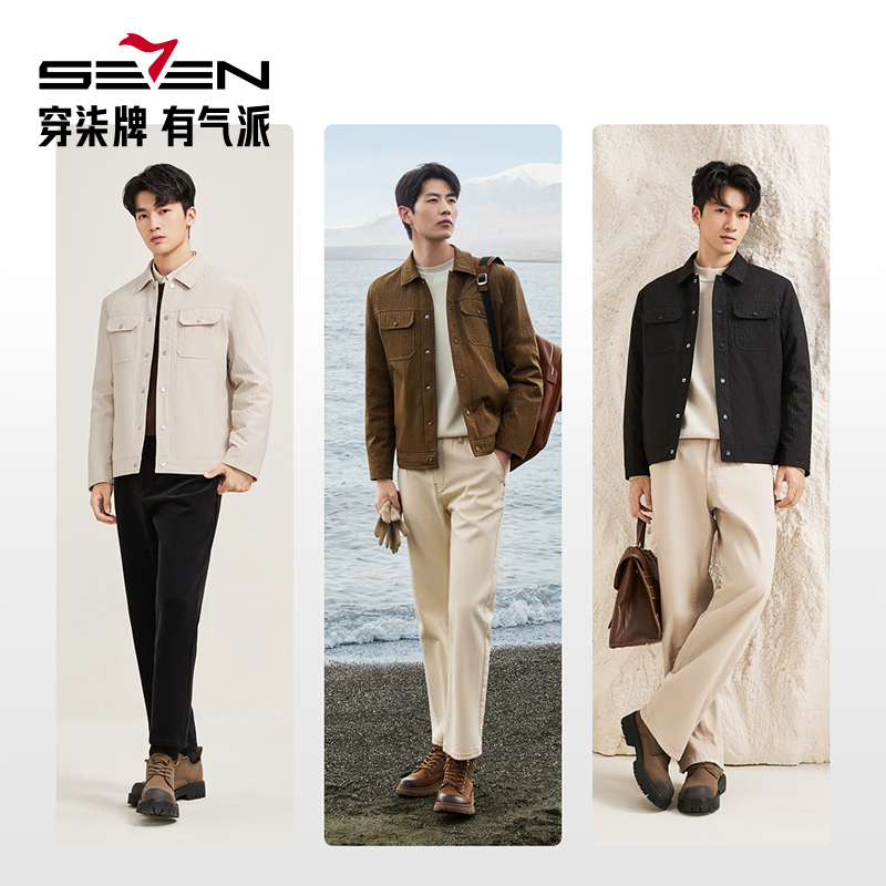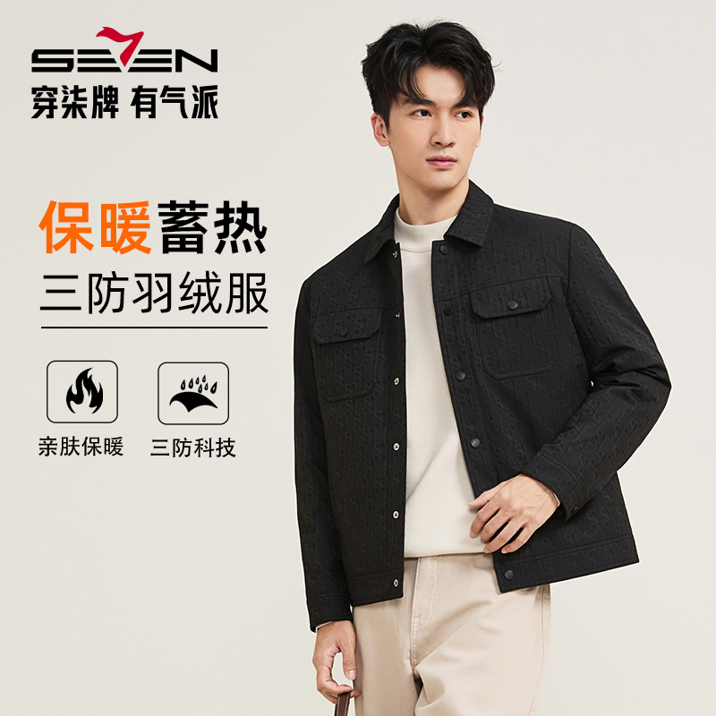 【工装羽绒服】柒牌羽绒服男翻领三防冬新款休闲保暖羽绒夹克外套