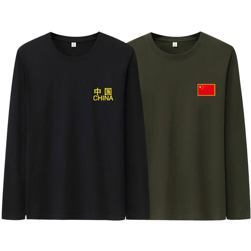 100%纯棉春秋男士长袖T恤圆领宽松大码秋衣男装上衣体恤打底衫