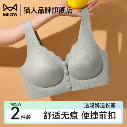 猫人妈妈内衣女前扣式聚拢无钢圈上托防下垂宽肩无痕中老年文胸罩