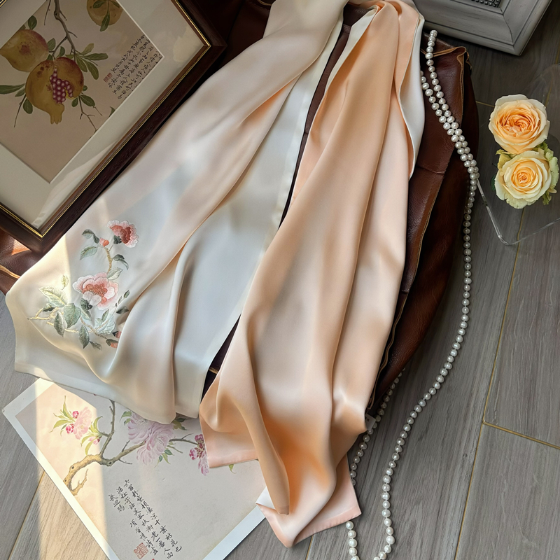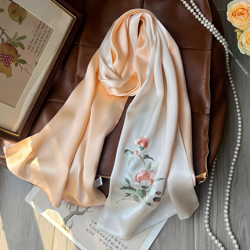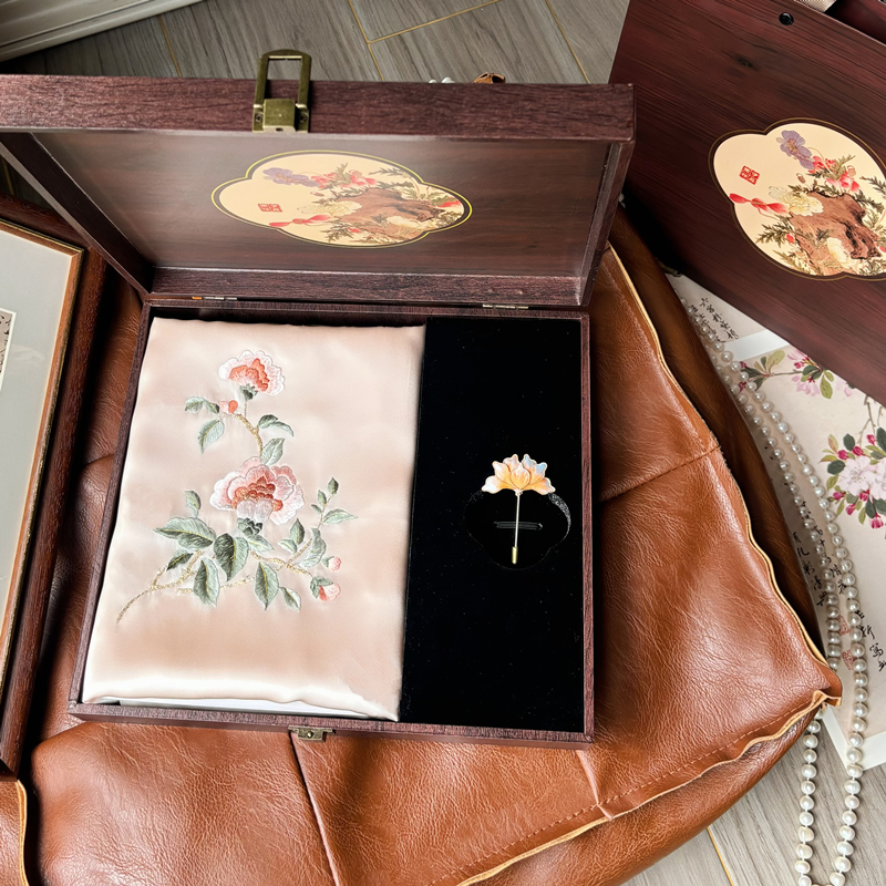 非遗传承苏绣真丝丝巾桑蚕丝围巾手工绒花胸针组合套装母亲节礼物