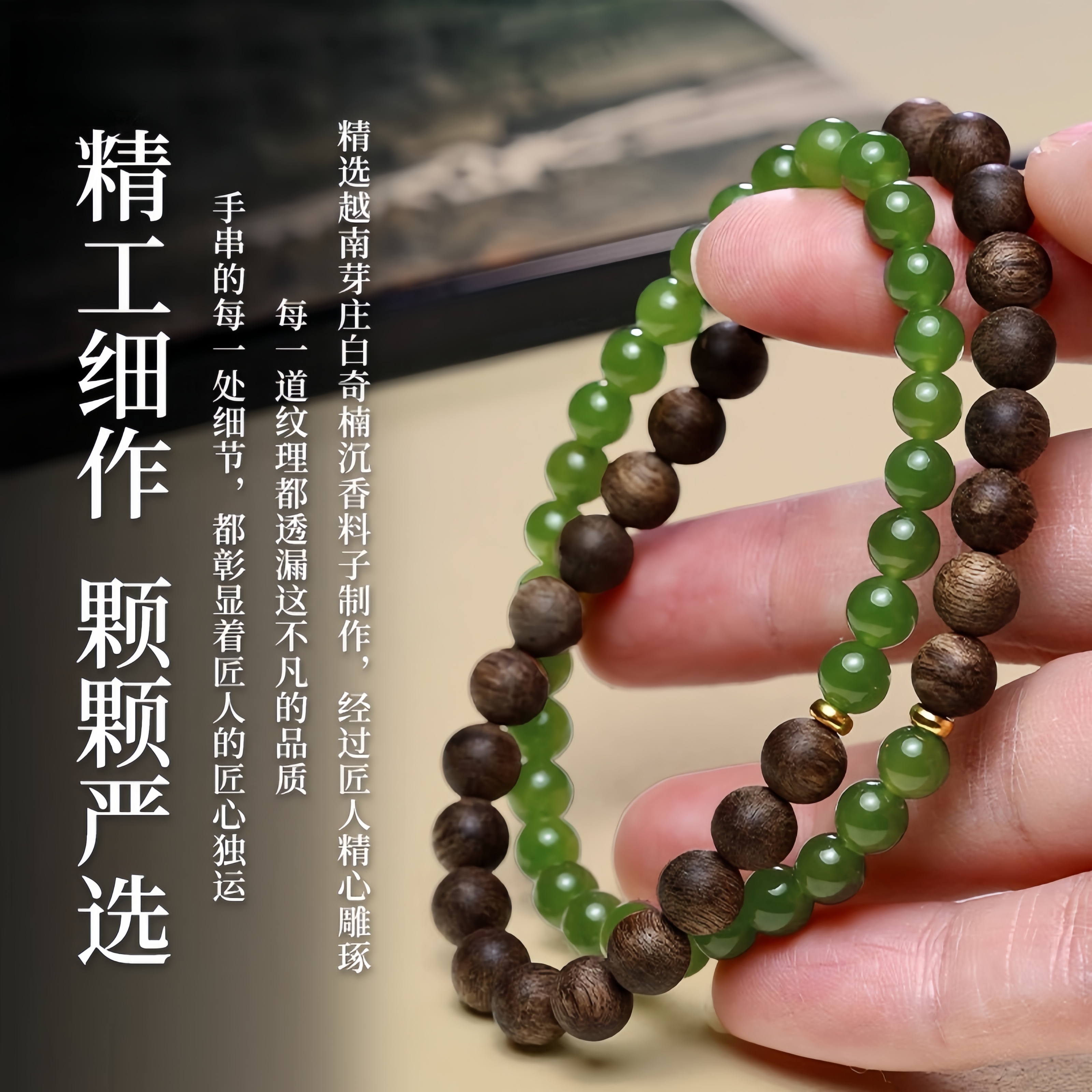 沉水级天然奇楠沉香手串棋楠老料淳化高端收藏碧玉双圈手链女送礼