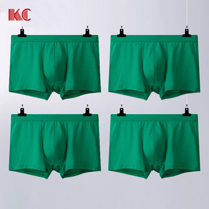 KC男士绿色裤头内裤纯棉四角裤绿帽子全棉质平角裤男人短裤