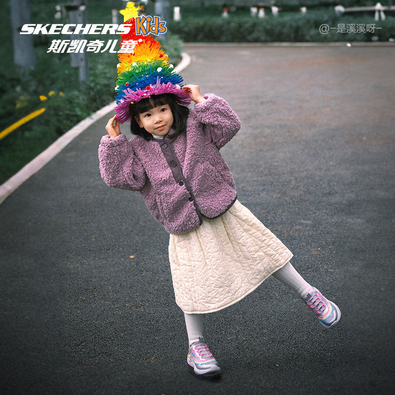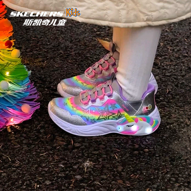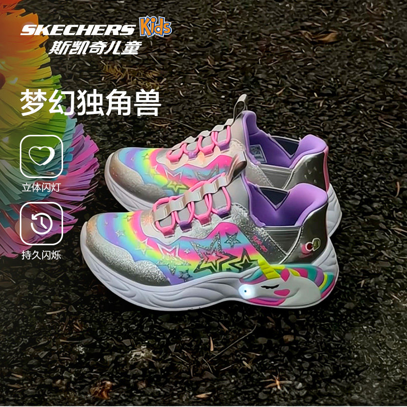 Skechers斯凯奇儿童闪穿鞋春夏时尚新年女童公主闪灯一脚蹬休闲鞋