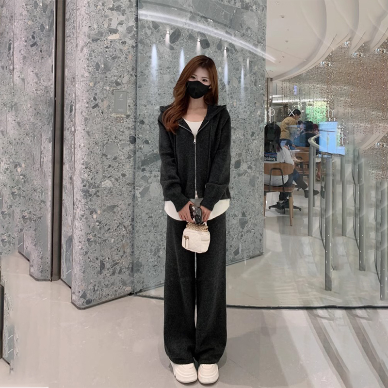 休闲 时尚假两件连帽运动衫宽松显瘦阔腿裤两件套女秋季套装2025