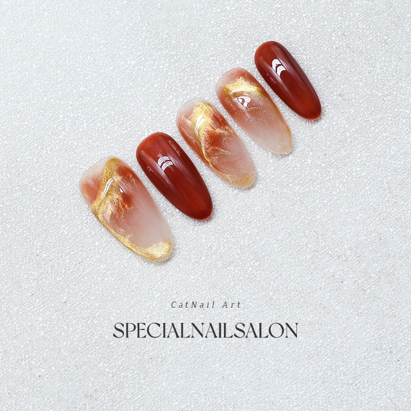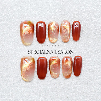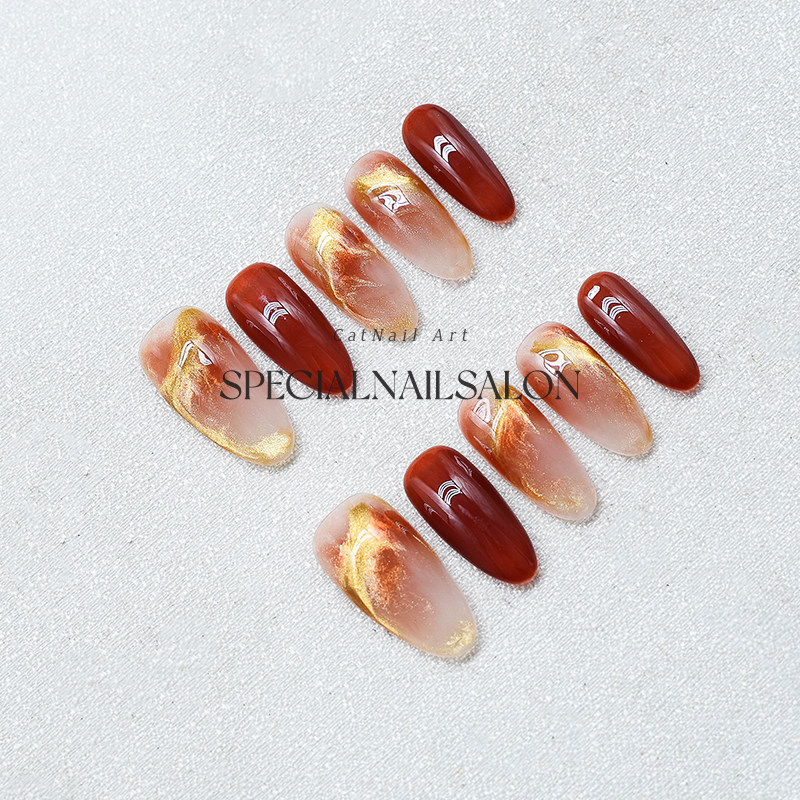 【晚风映霞】2026新款高级感红色新年晕染新娘婚甲中长款穿戴美甲
