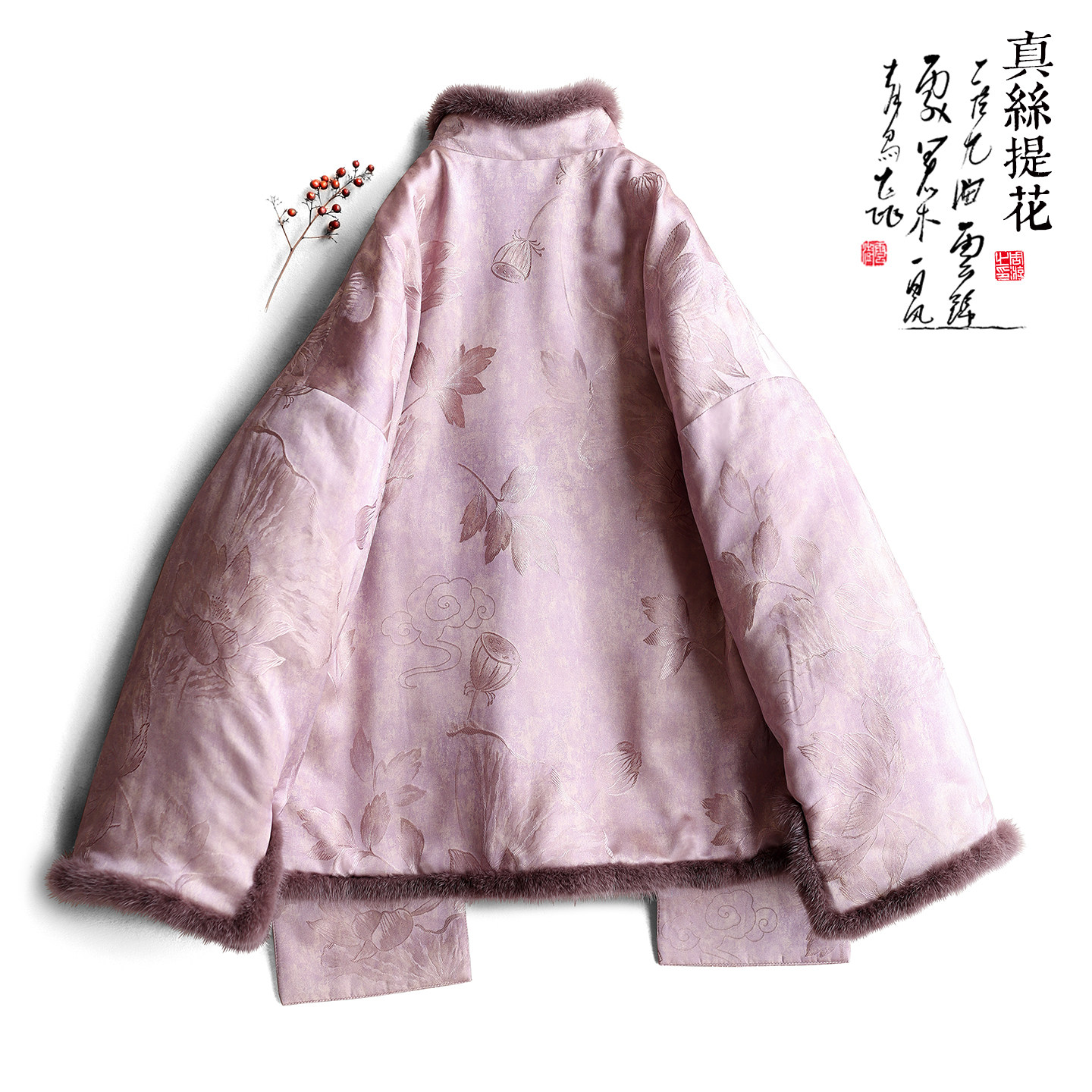云澍原创真丝提花新中式国风水貂毛立领休闲宽松棉服上衣外套女冬