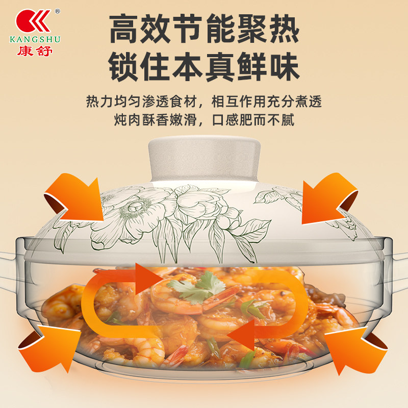 康舒国风牡丹花盖砂锅家用大容量砂锅干烧不裂一锅多用陶瓷煲汤锅