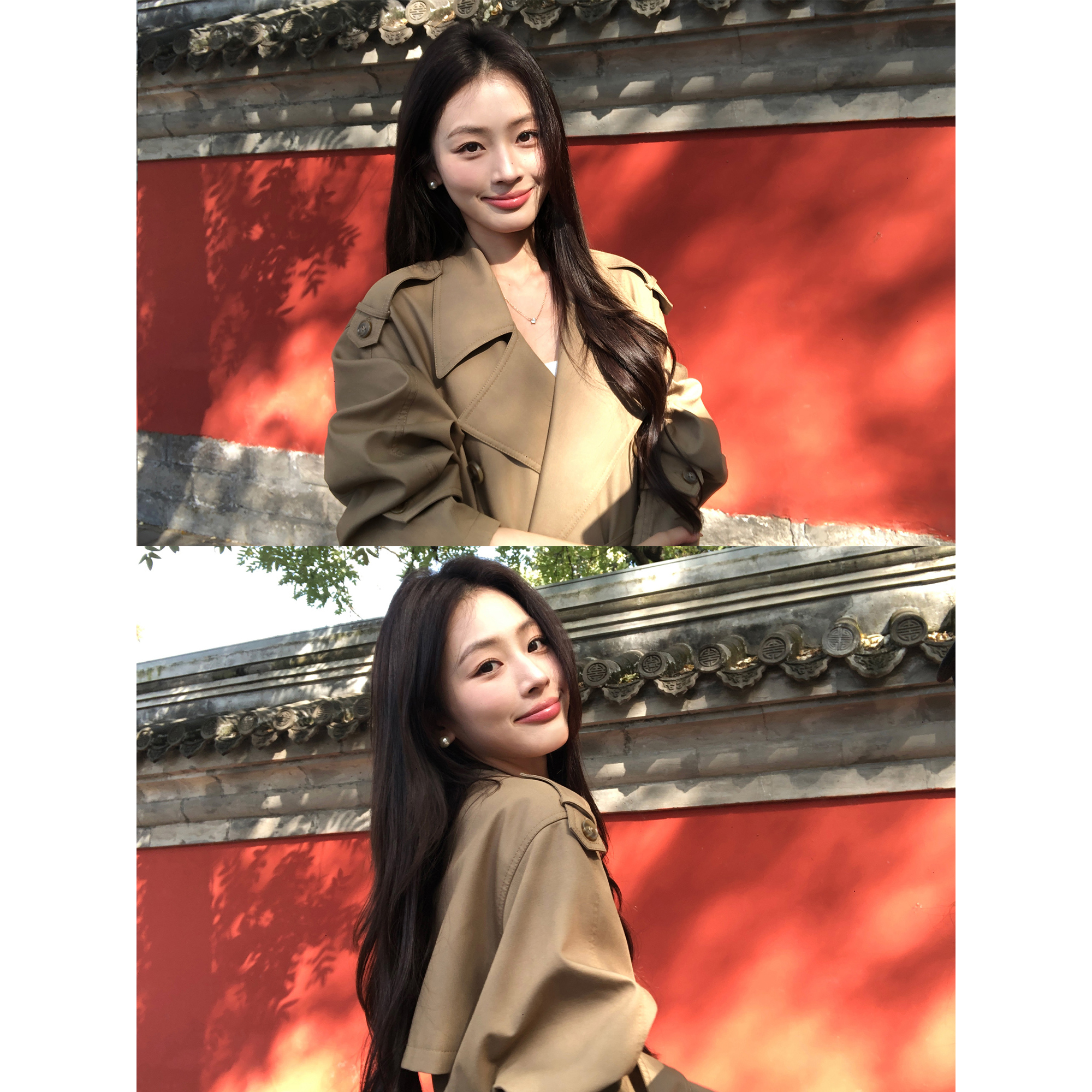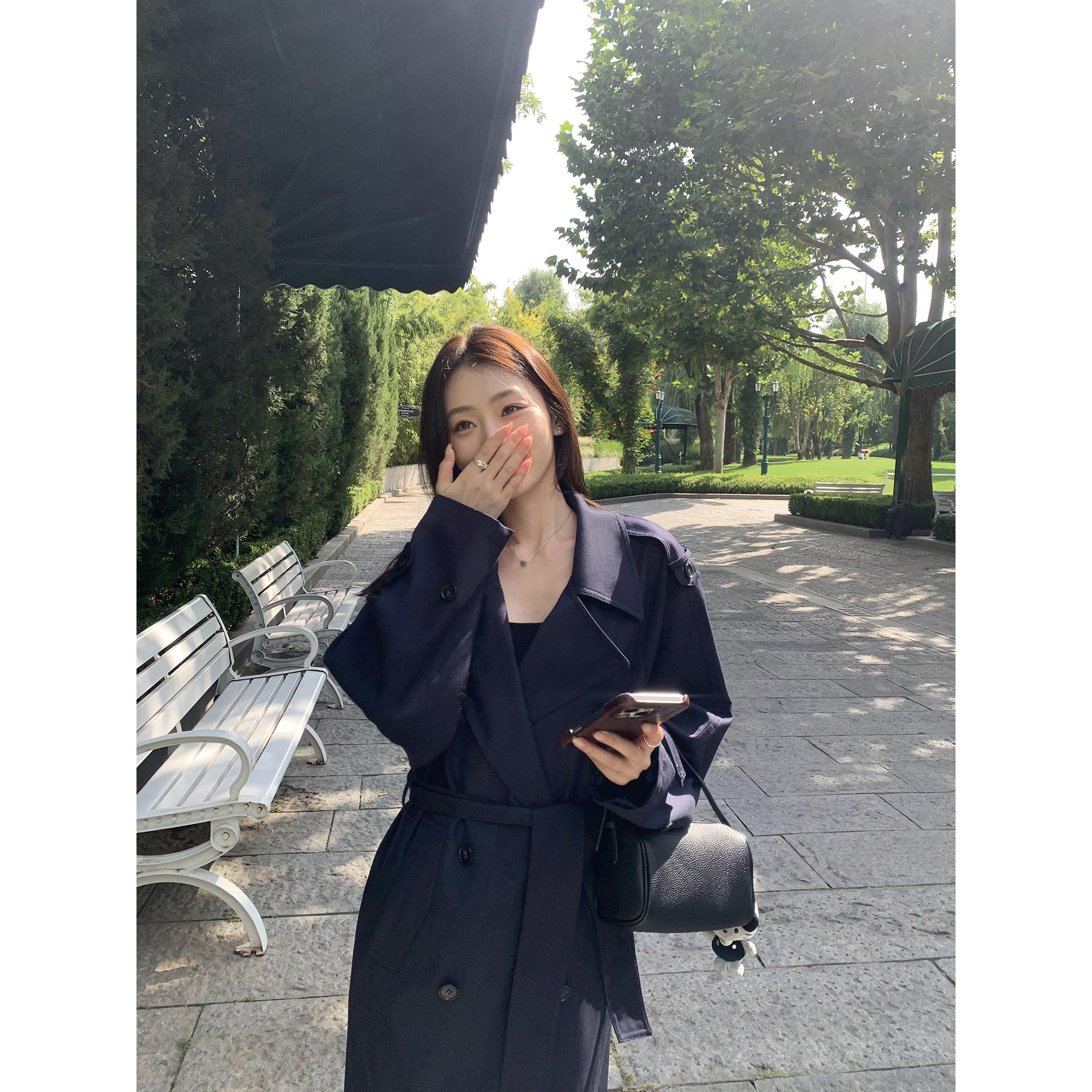 pusumede row风格调 经典廓形翻领大衣女气质收腰中长款风衣外套
