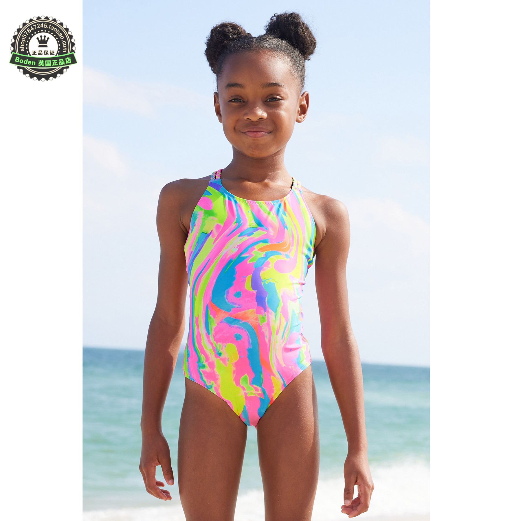 现货NEXT儿童连体泳衣 2025夏季女童粉黄流云运动温泉泳装 3-16岁
