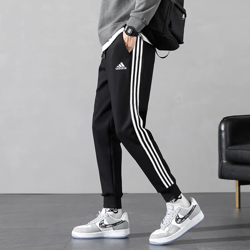 阿迪达斯加绒加厚男裤运动裤新款跑步健身训练卫裤三条纹长裤子