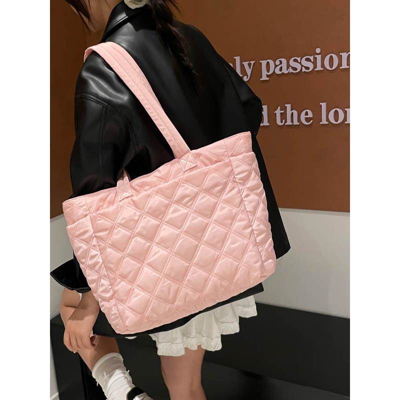 小香风菱格包包女2025秋冬新款潮简约通勤托特包大容量轻便单肩包