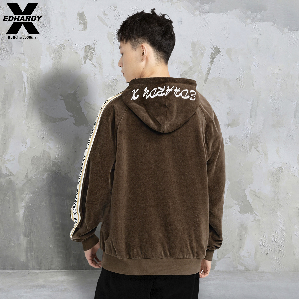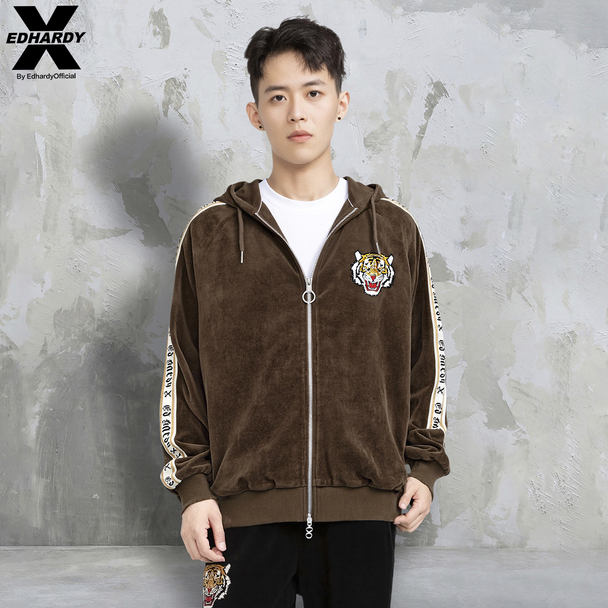 EdHardyX虎头天鹅绒连帽开衫卫衣