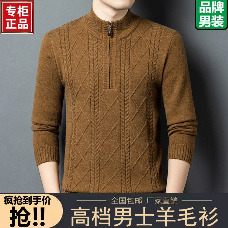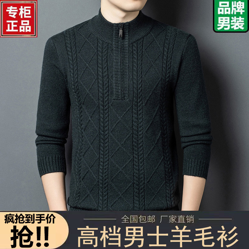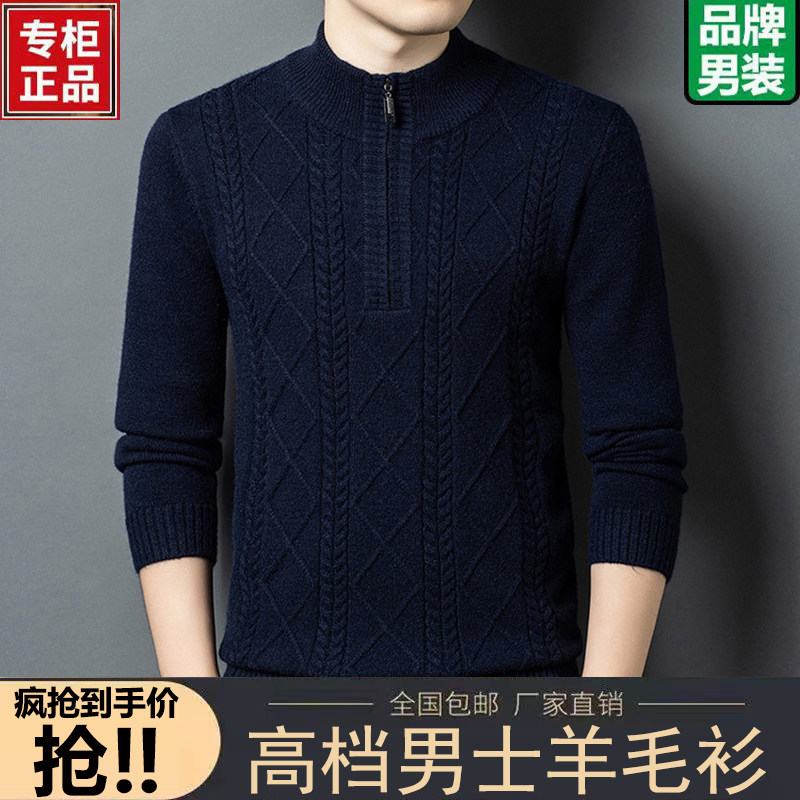 鄂尔多斯市男士加厚打底衫半高拉链领中年针织衫男款秋冬季羊毛衫