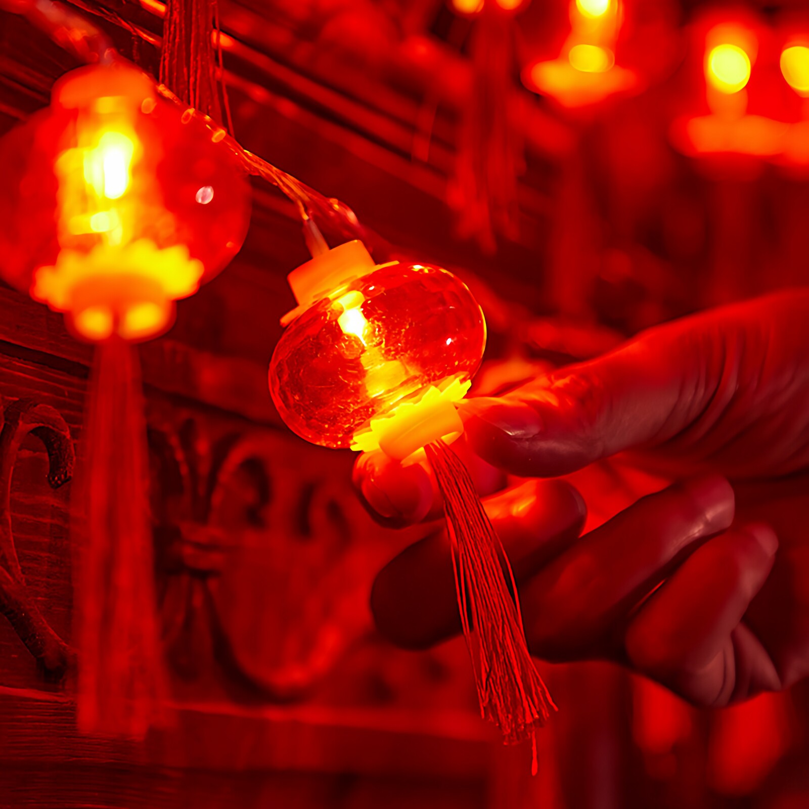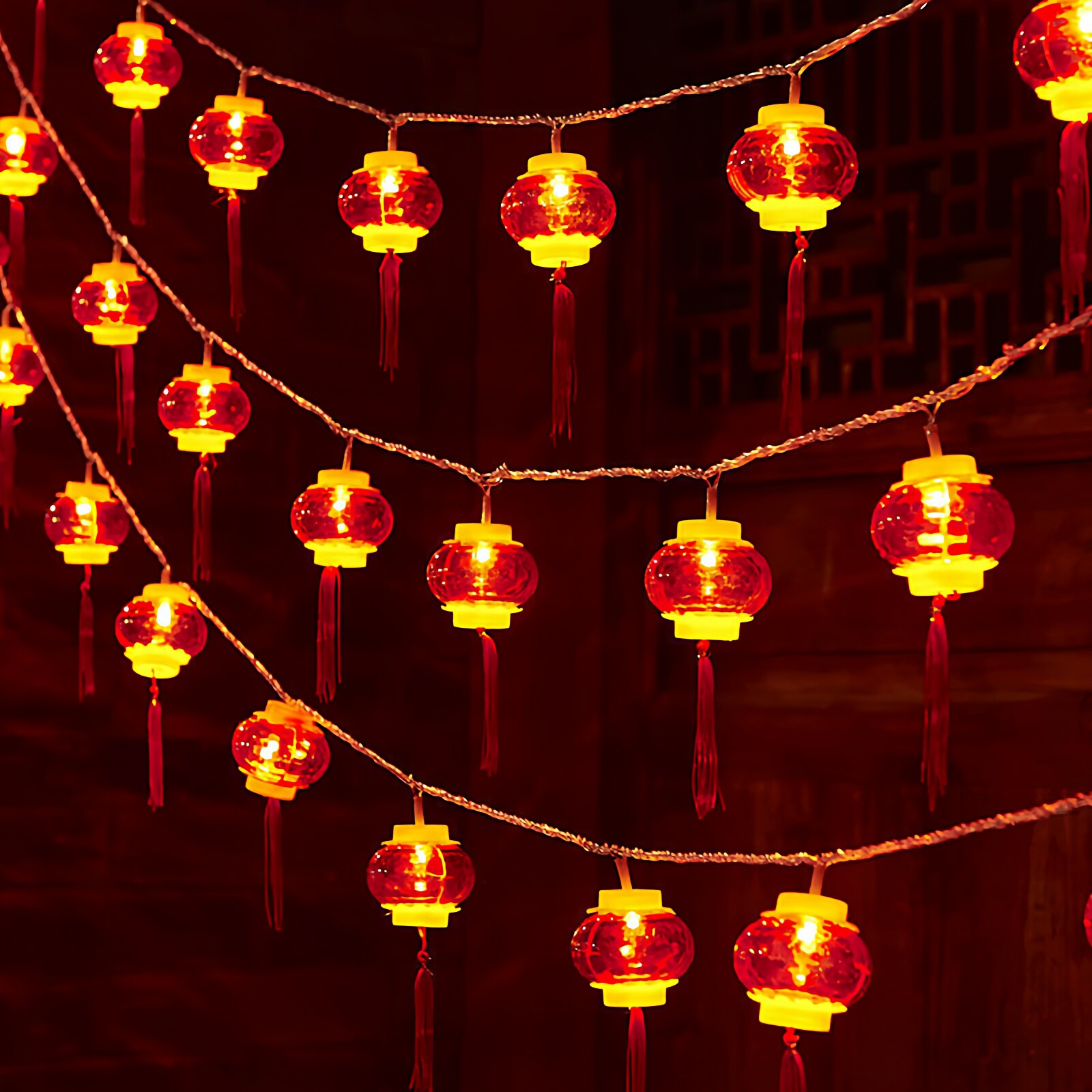 阳台挂件带电彩灯室内装饰串灯水晶红灯笼结婚围栏发光灯串小挂饰