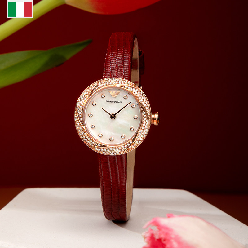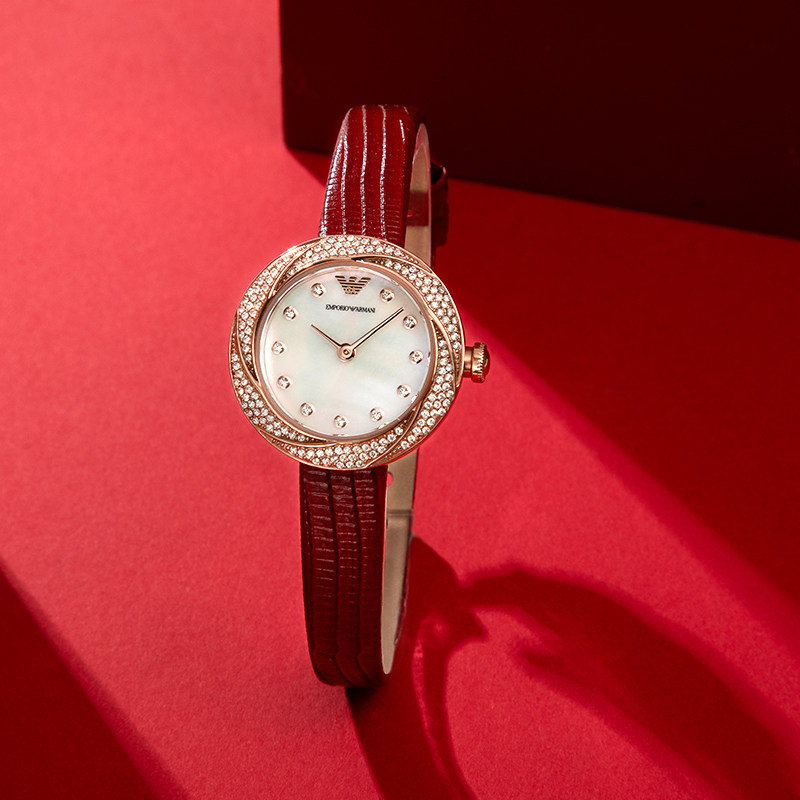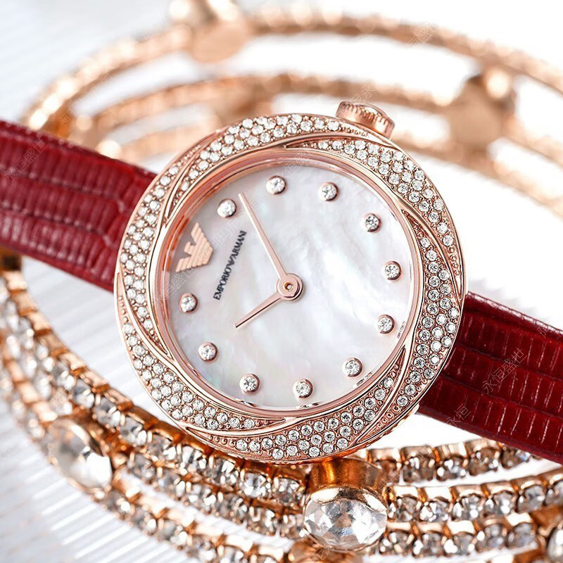 【自营】阿玛尼手表女满天星水钻贝母本命年红色石英女表AR11475