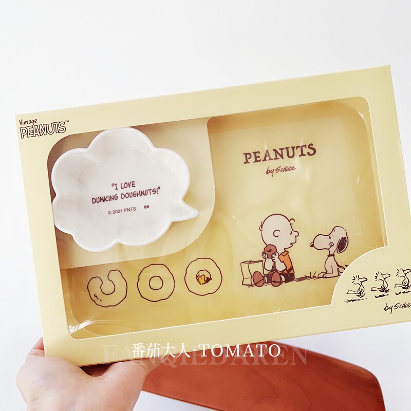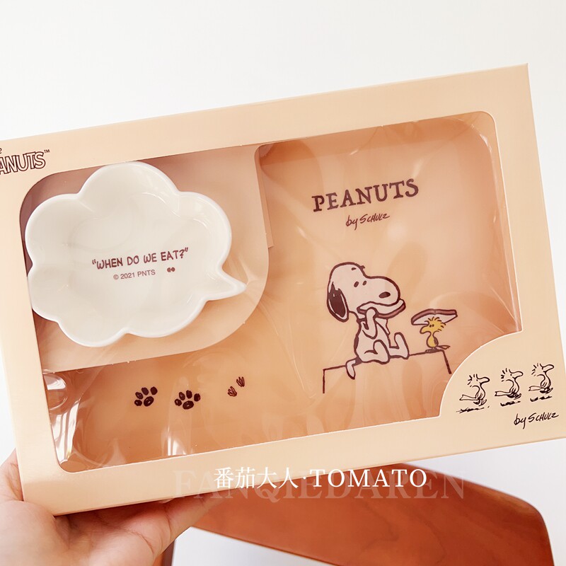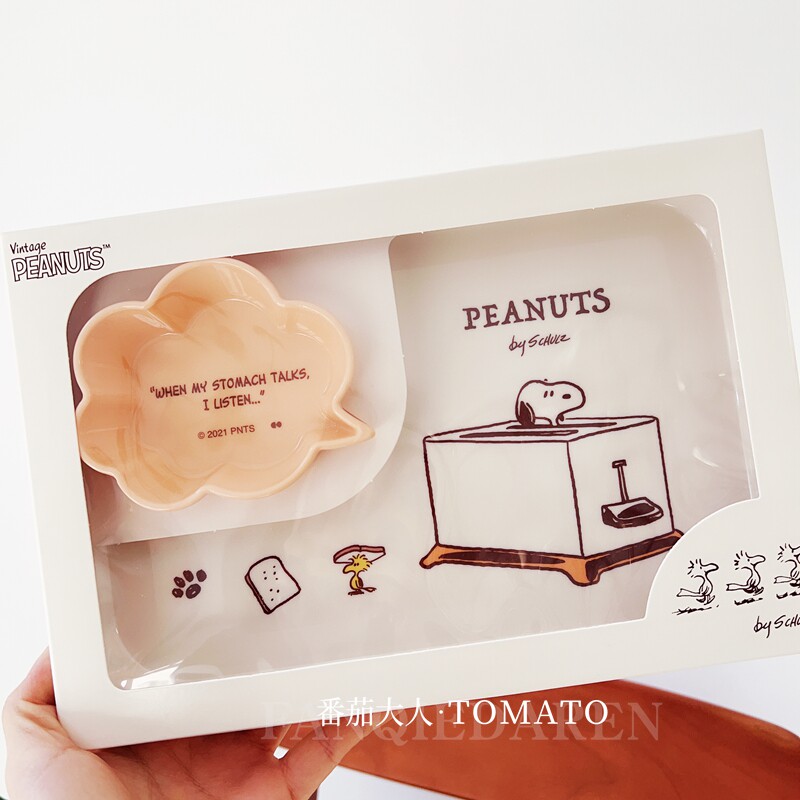 现货清仓1日本带回史努比新款餐盘 零食盘树脂餐具 礼盒装