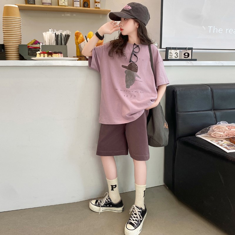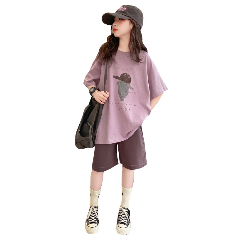 女童夏季套装2025新款夏装女孩纯棉短袖薄款休闲短裤儿童两件套夏