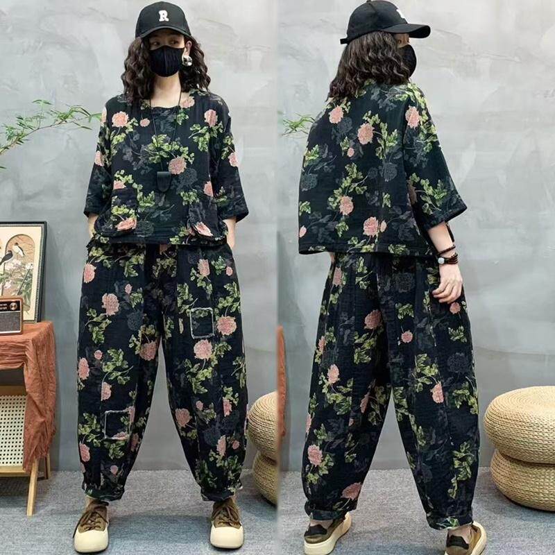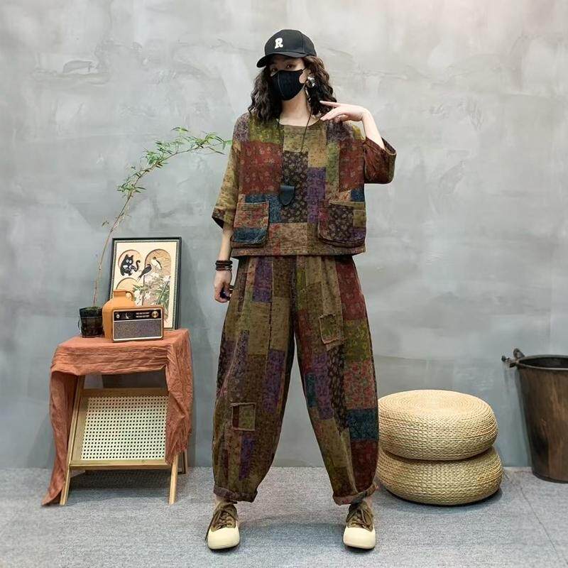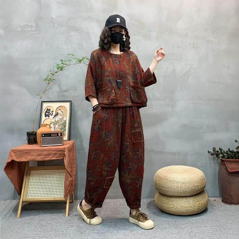 2025春季新款棉麻休闲套装南瓜裤