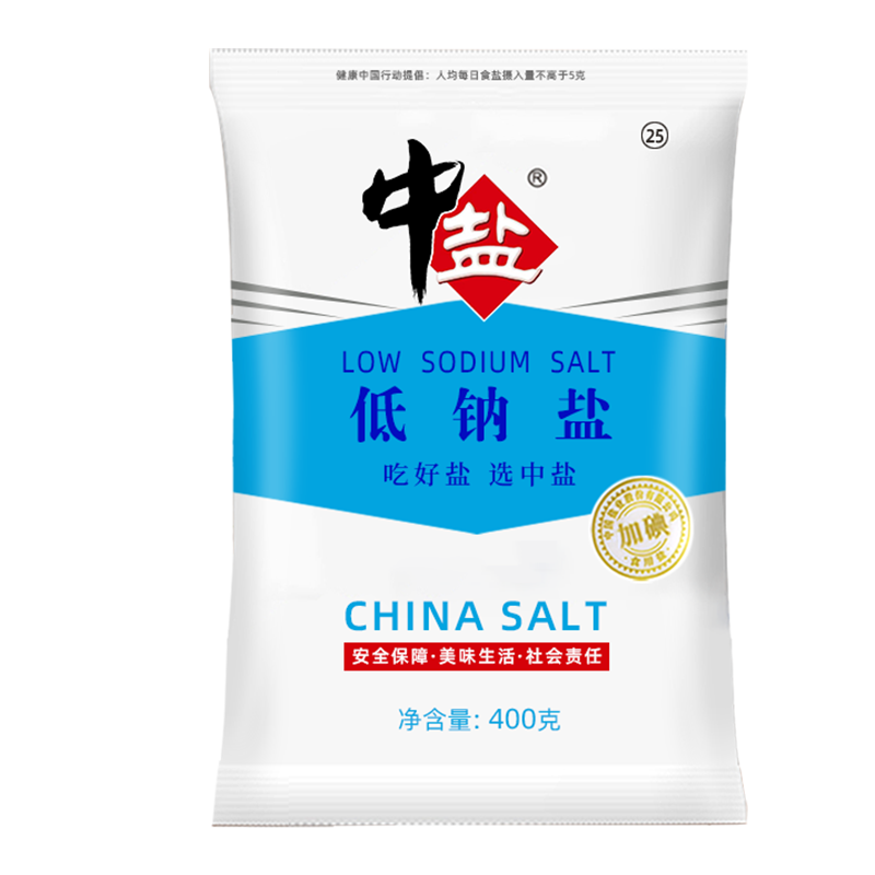 中盐低钠盐家用日常烹饪加碘食用盐调味品炒菜煮饭家庭调味品400g