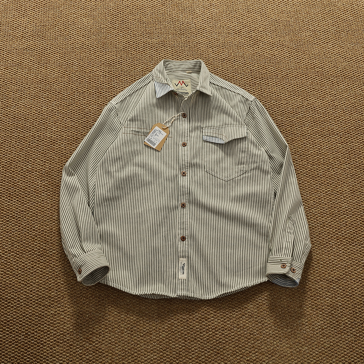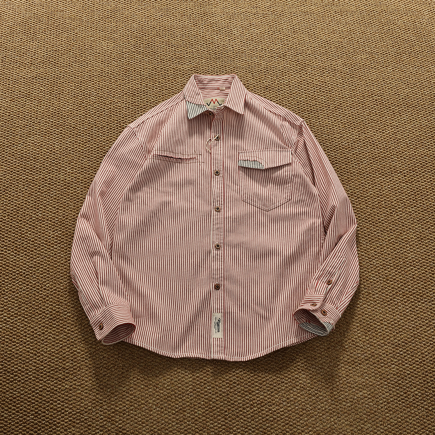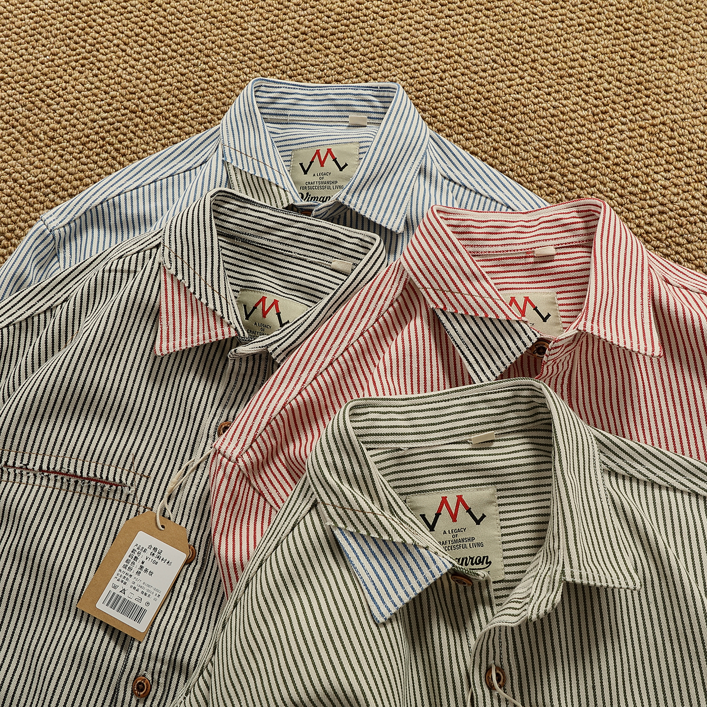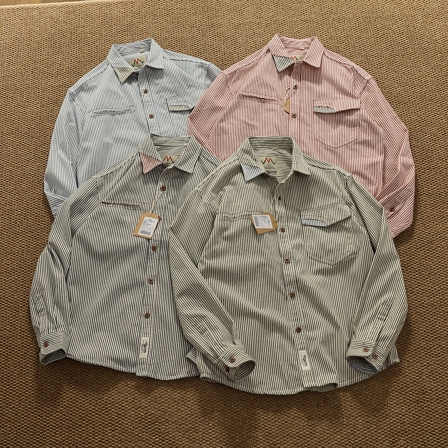 美式复古条纹牛仔衬衫男秋冬厚款特色破烂拼接撞色工装衬衣外套潮
