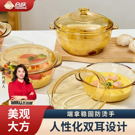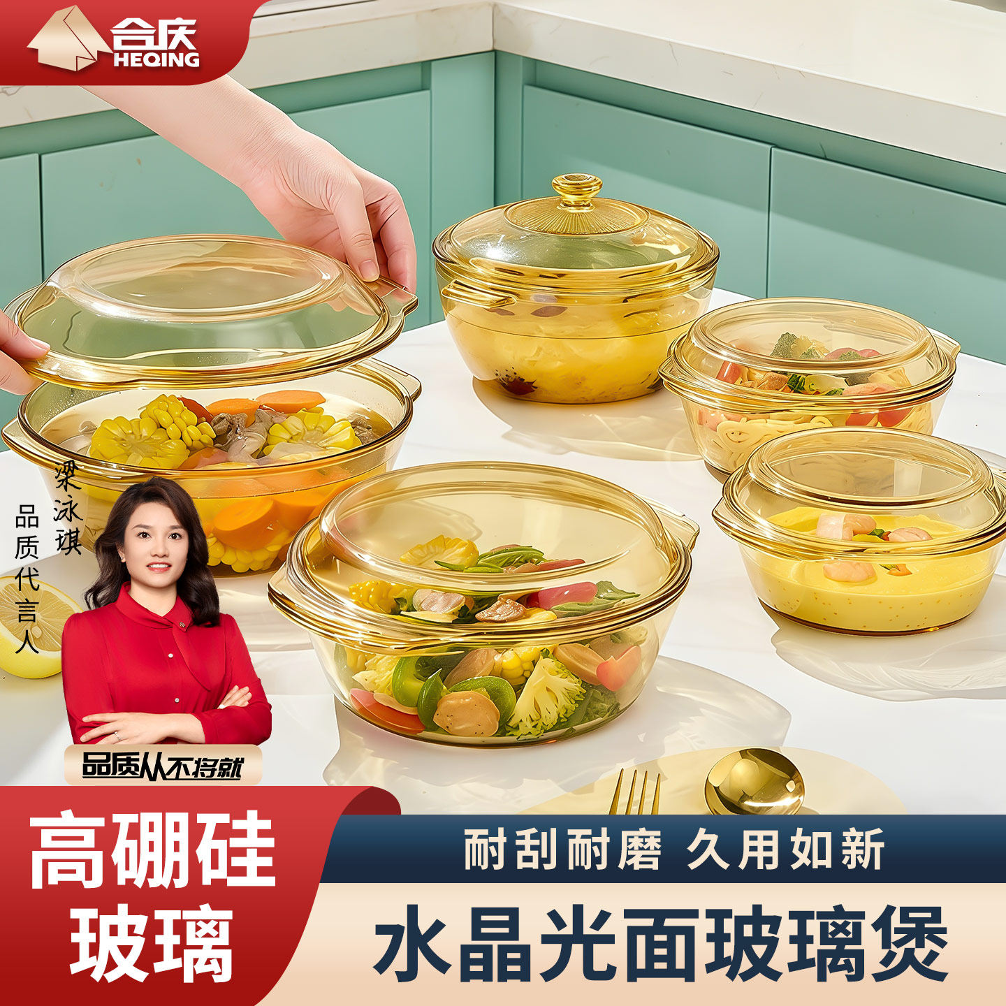 汤煲高硼硅玻璃煲炖锅耐高温炖盅隔水炖家用双耳带盖炖汤盅炖汤锅