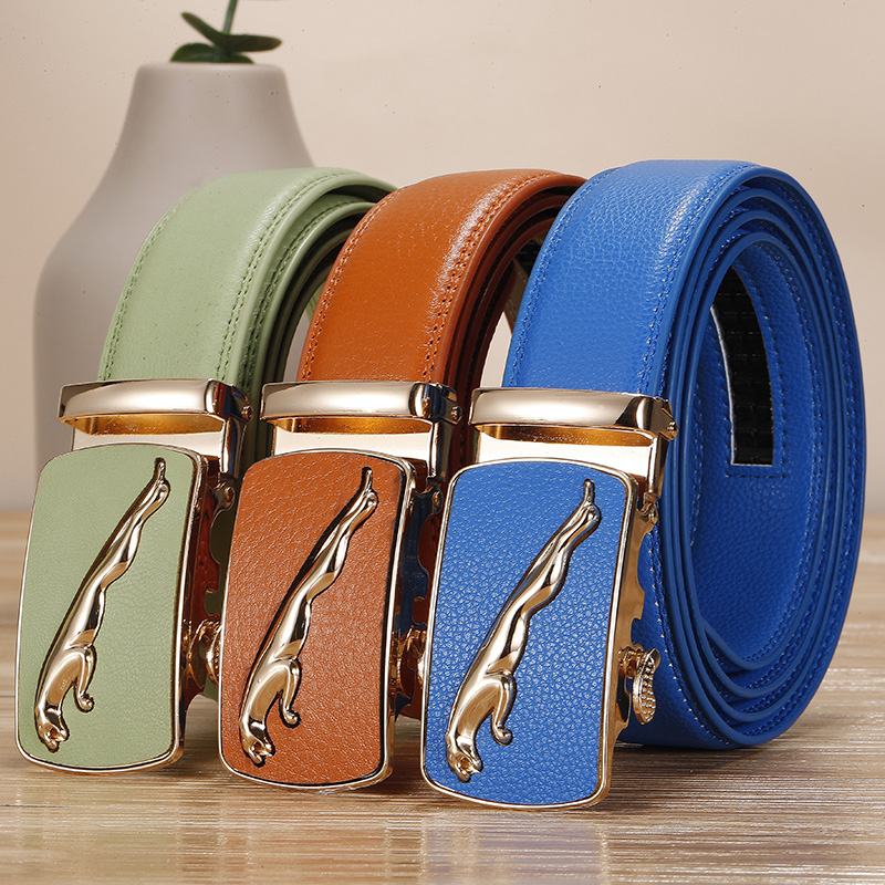 七维五行男土绿色真皮皮带黄色牛皮红色自动扣腰带蓝色白色裤带女
