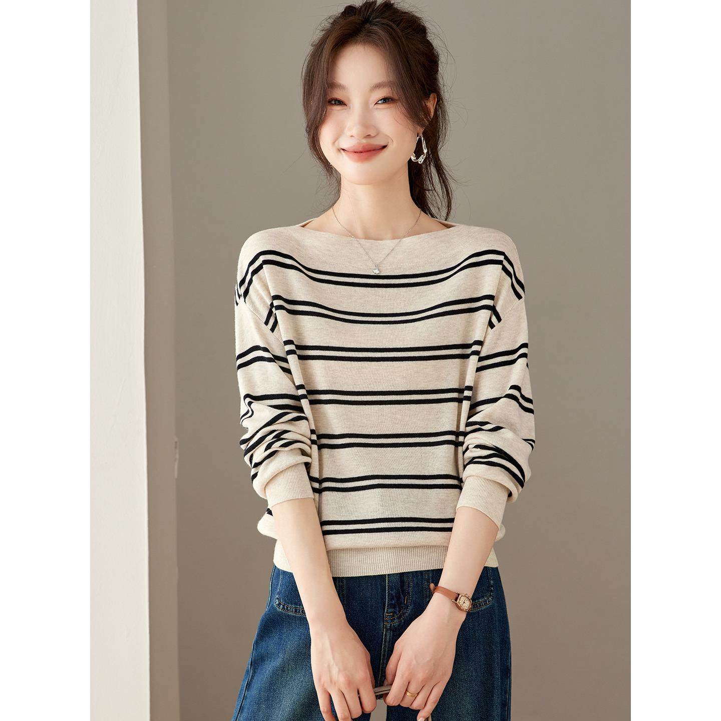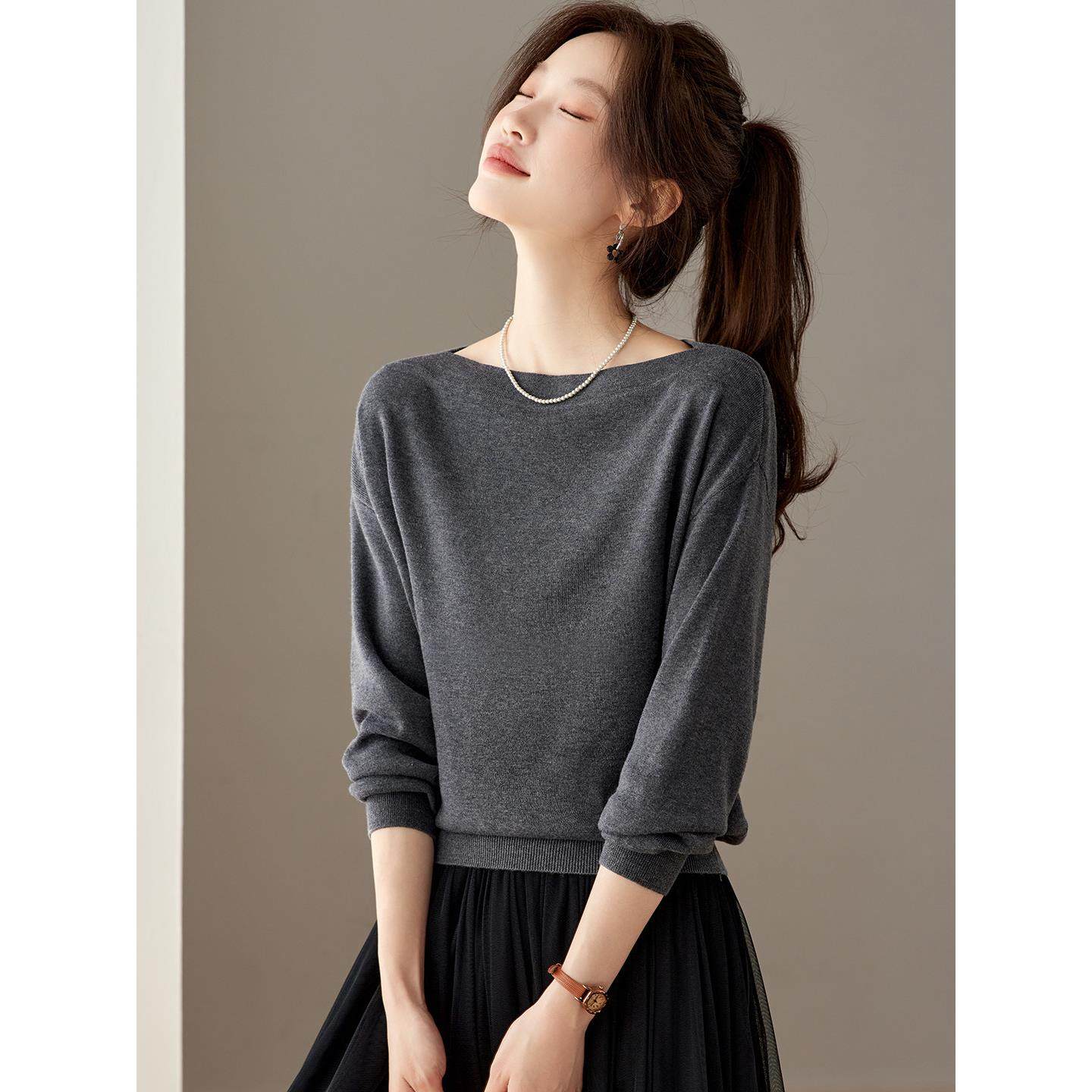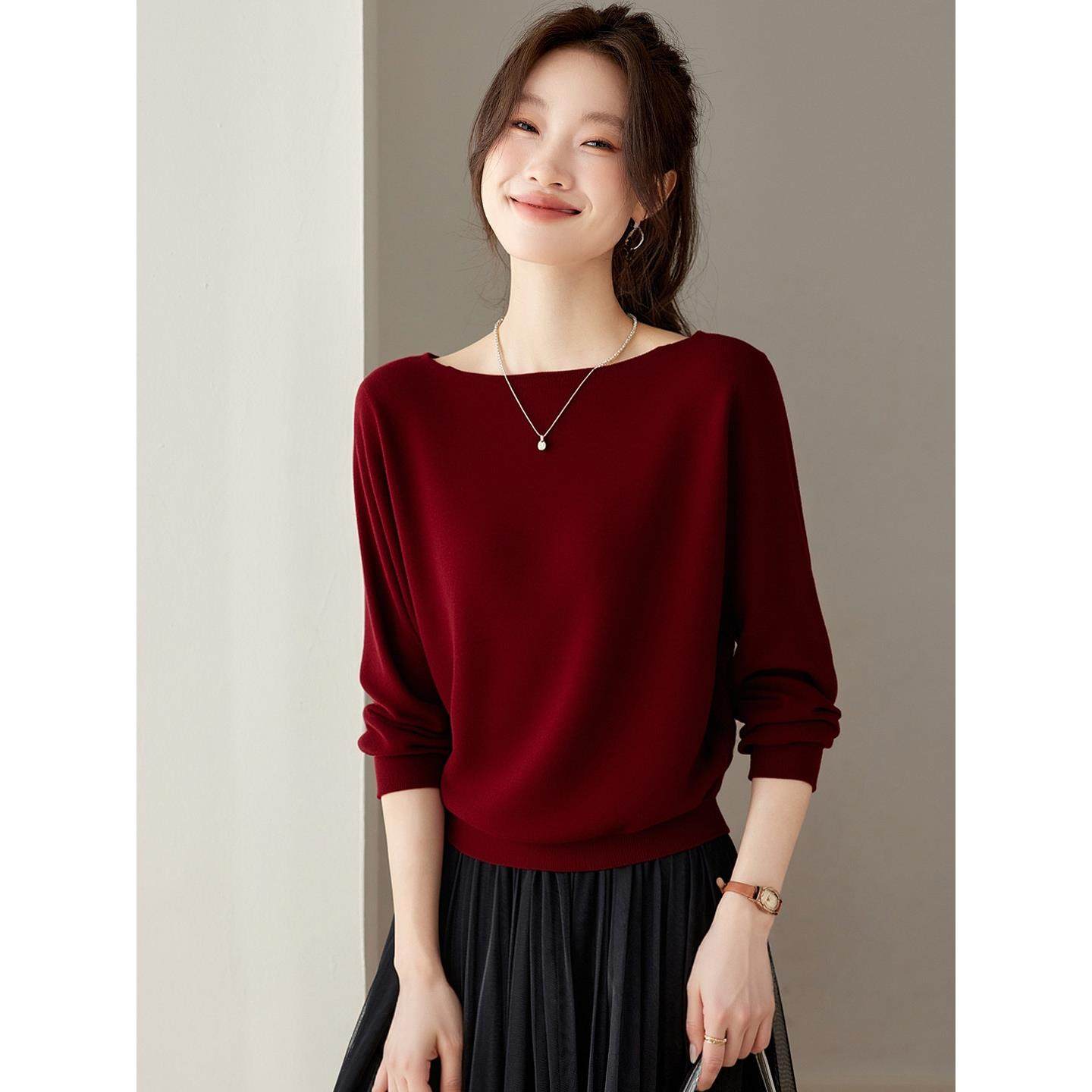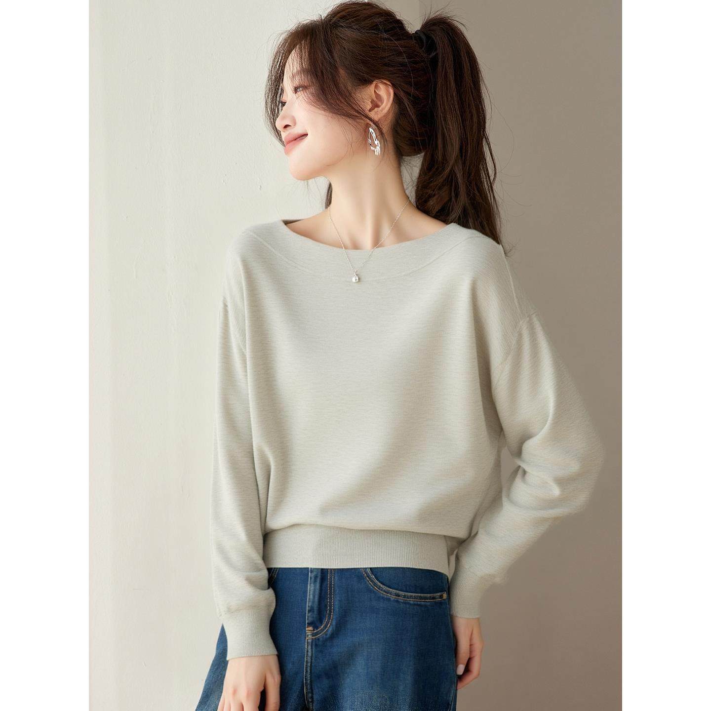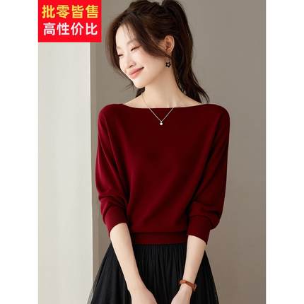 一字领毛衣女套头短款针织打底衫宽松蝙蝠衫羊毛衫高腰小个子秋冬