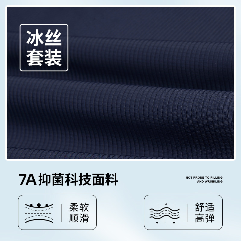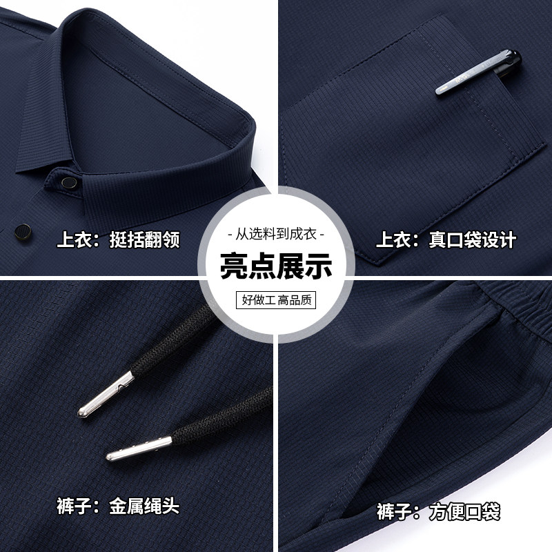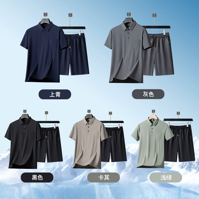 新款爸爸夏季凉感冰丝套装中年男士短袖t恤中老年男装短款两件套