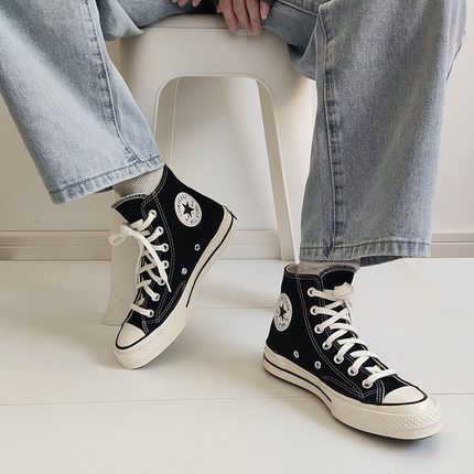Converse匡威1970s经典三星标黑色高帮男女帆布鞋162050C 162058C