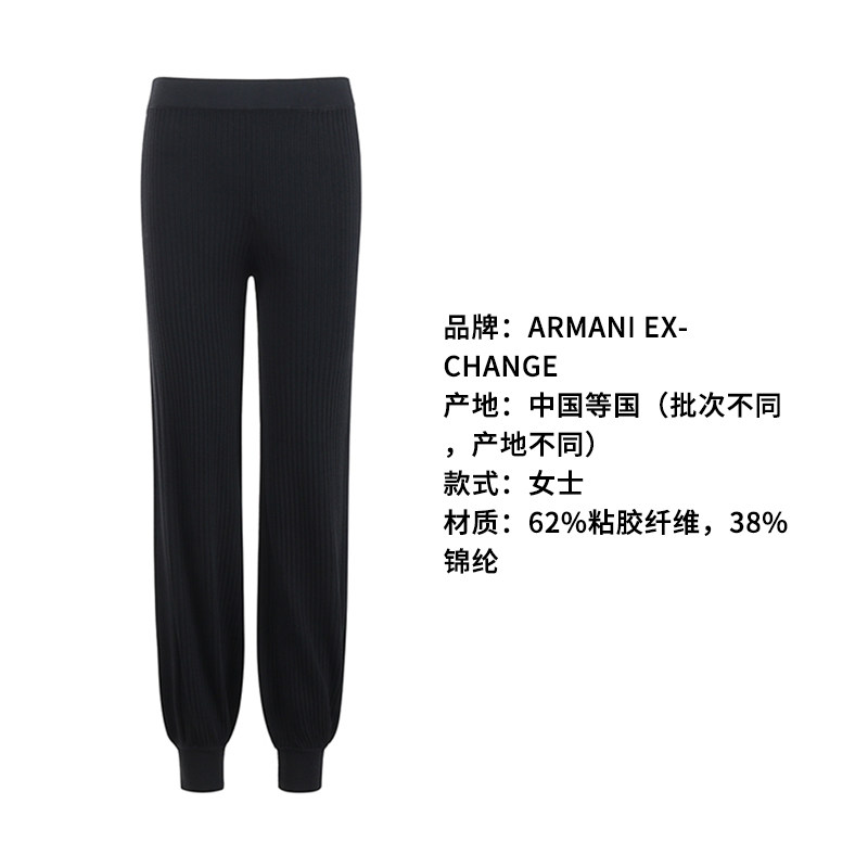 【甄品精选】AX阿玛尼女士徽标贴片针织卫裤女装长裤6LYP1B YMH6Z