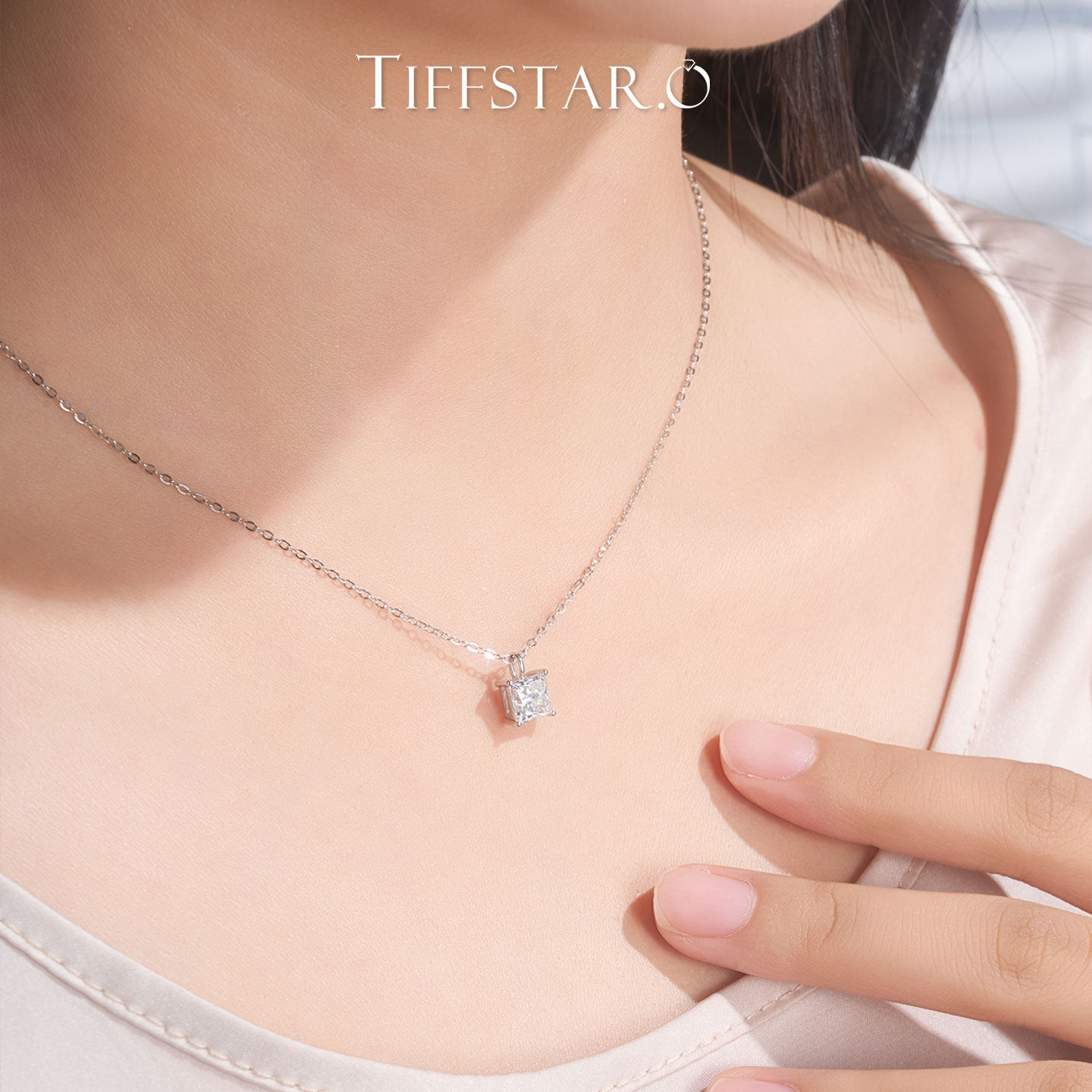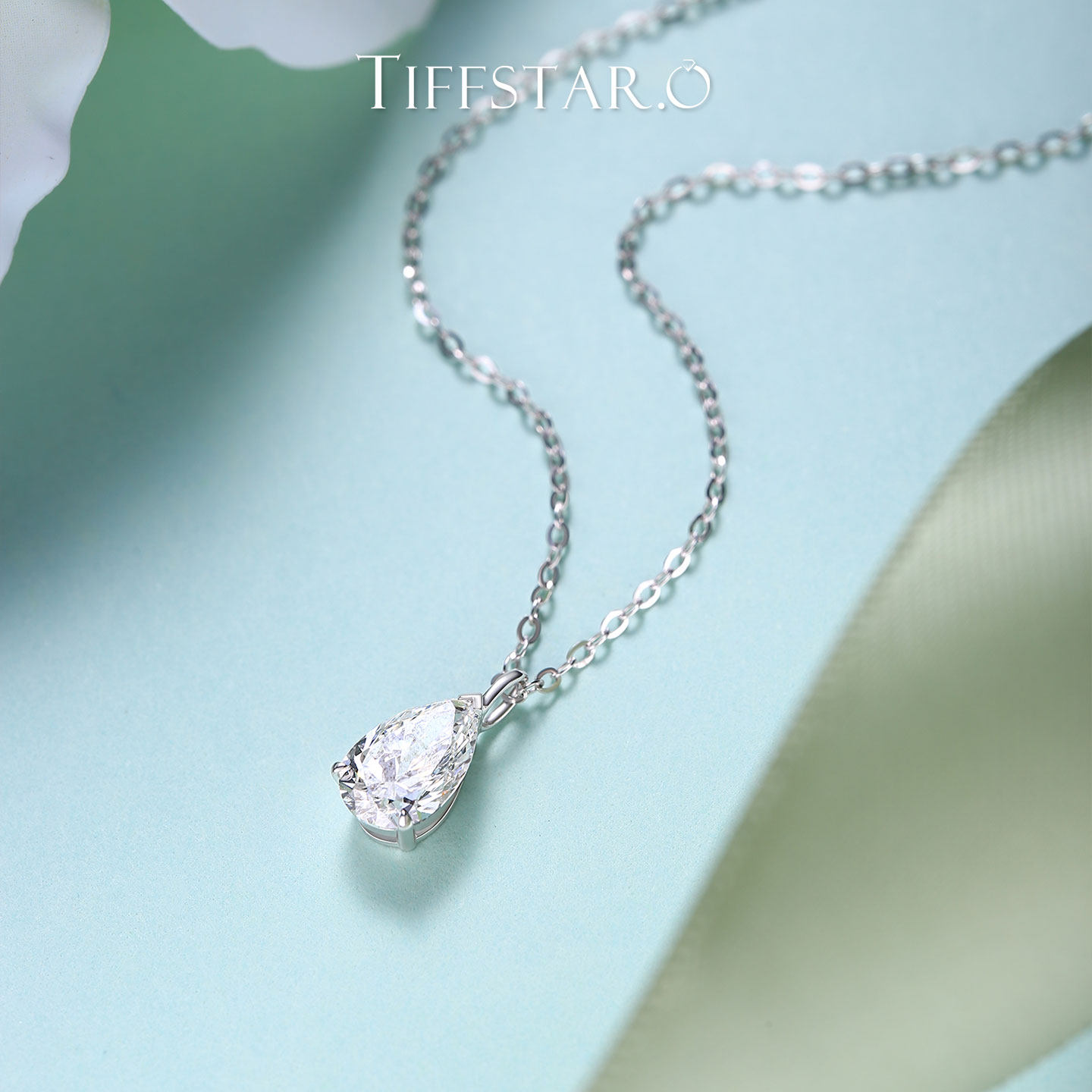 蒂芙星钻铂金PT950培育钻石异形单吊坠水滴马眼爱心公主方锁骨链