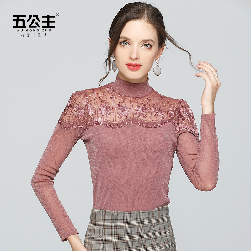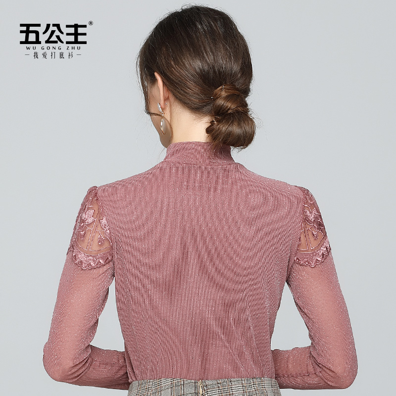 五公主高领蕾丝打底衫春秋小衫时尚女内搭长袖纱衣网纱洋气上衣薄