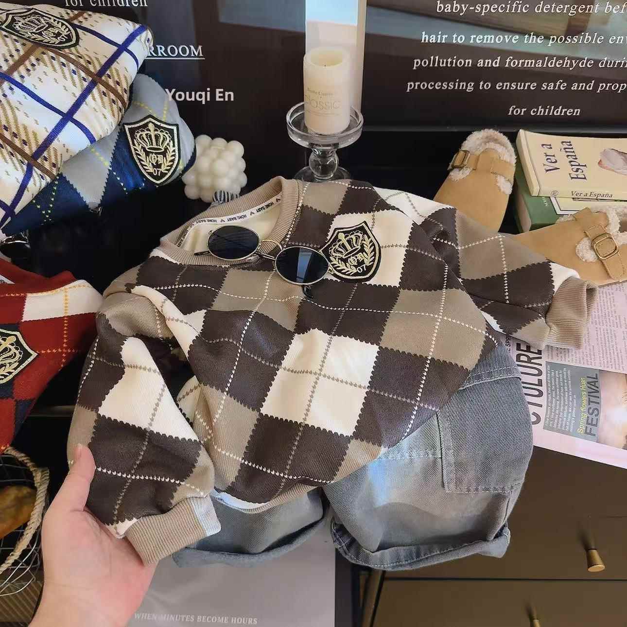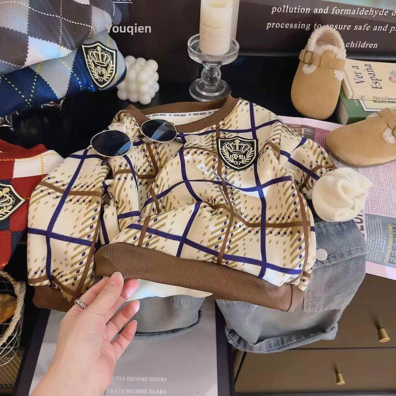 2025新款儿童卫衣秋冬加绒男女童保暖针织毛衣宝宝圆领套头打底衫