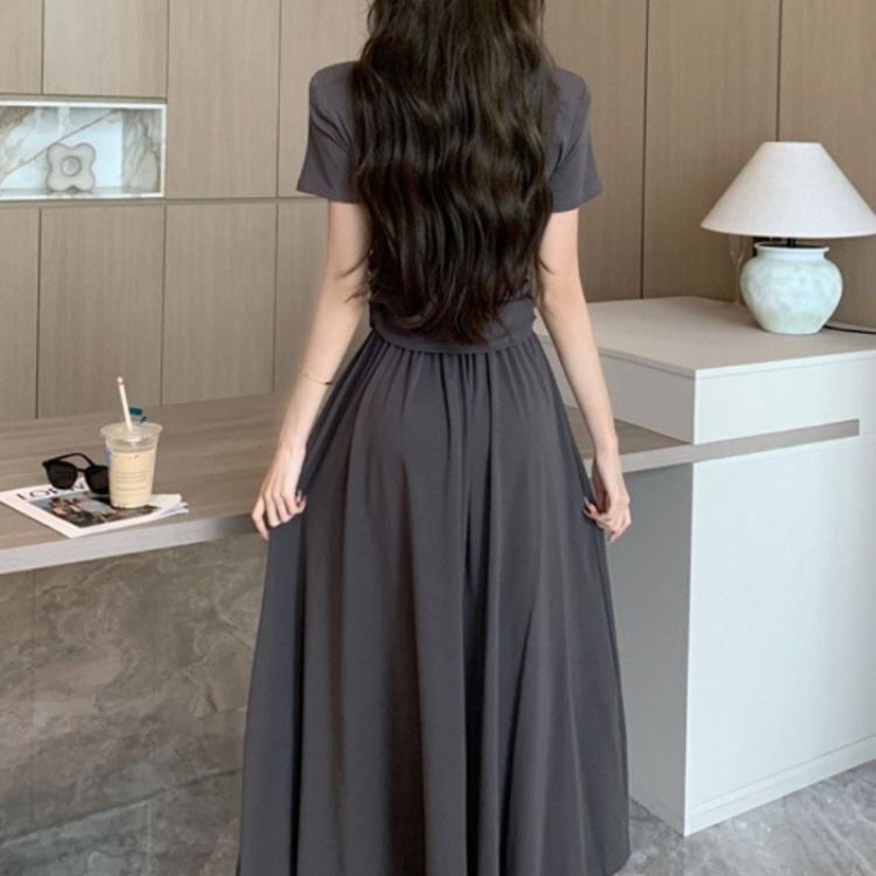 盐系轻熟风2025女夏季新款短袖T恤上衣休闲气质百褶半身裙两件套
