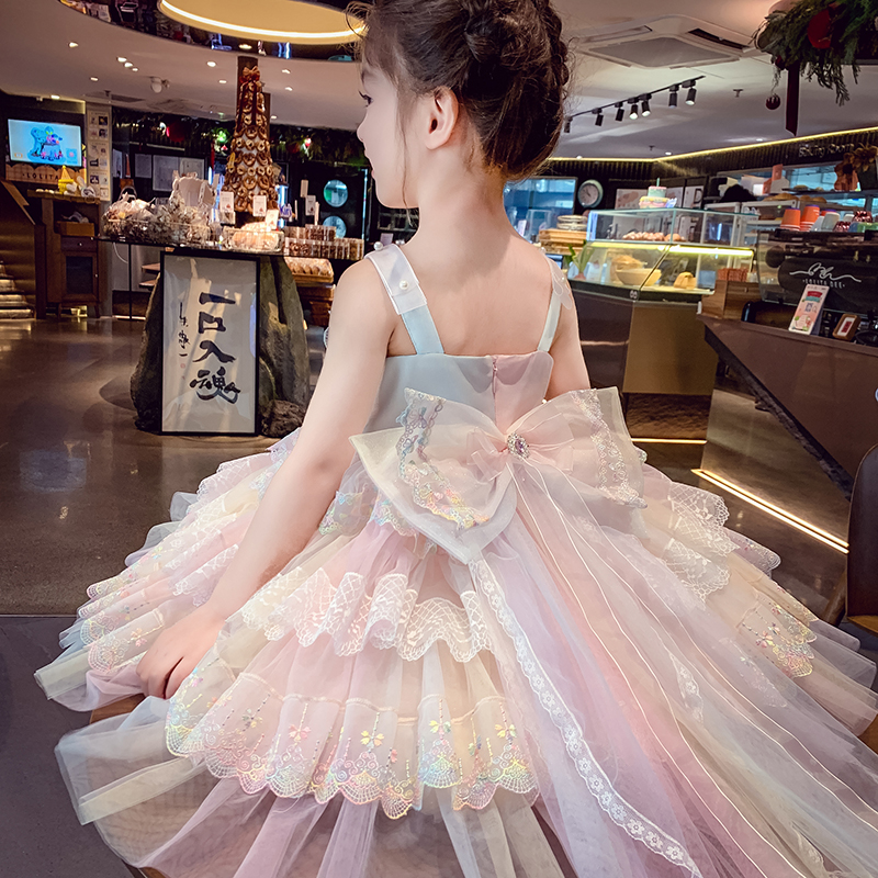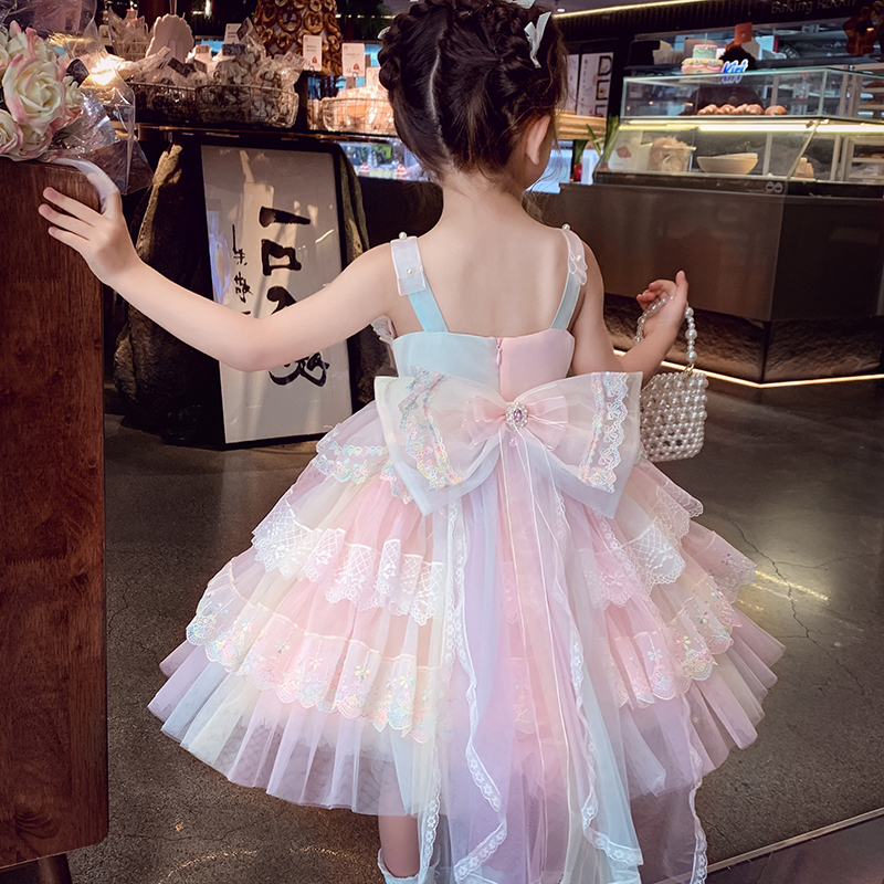 女童公主裙夏装2025新款洋气儿童彩虹吊带蛋糕裙小女孩生日连衣裙