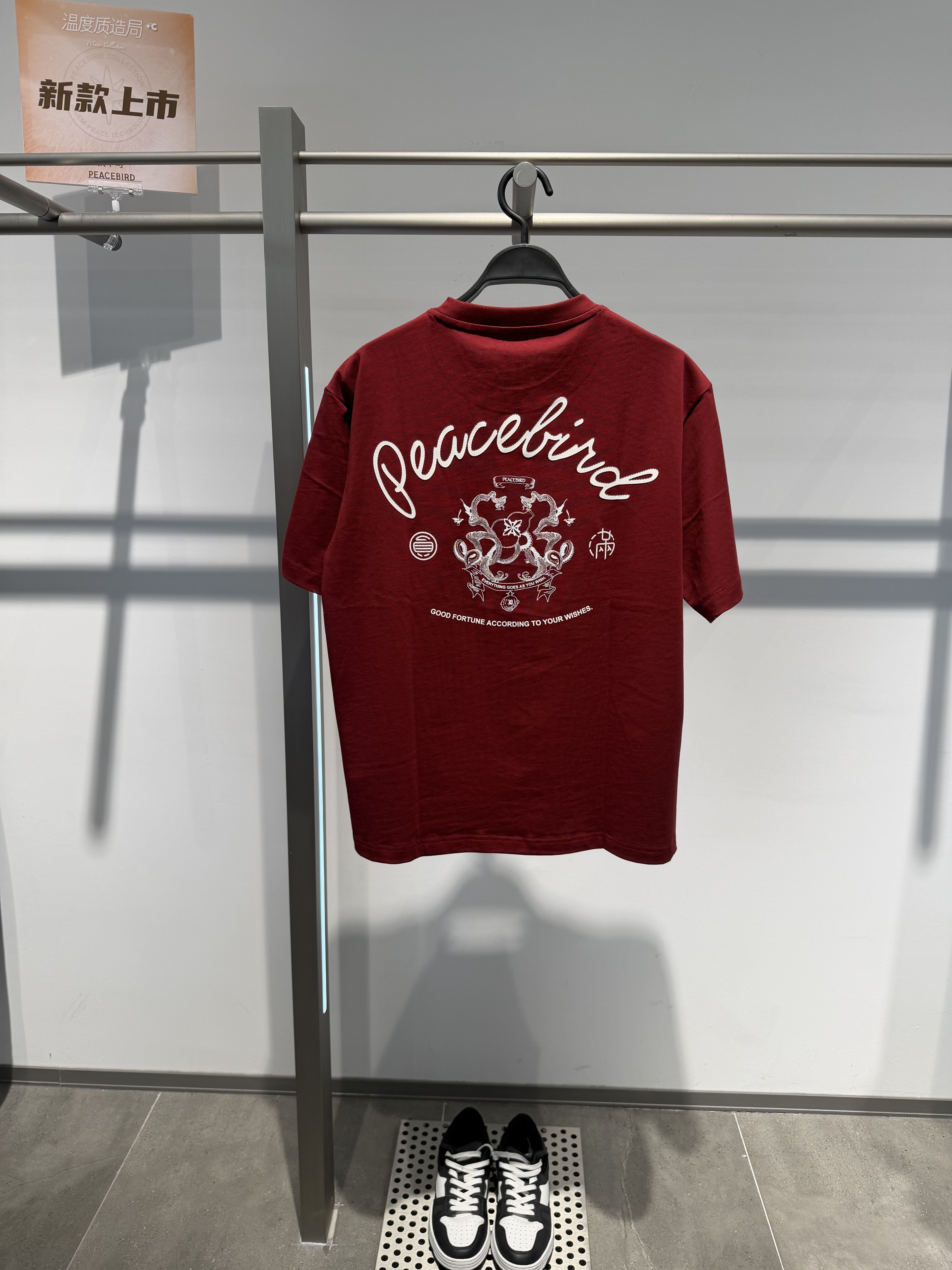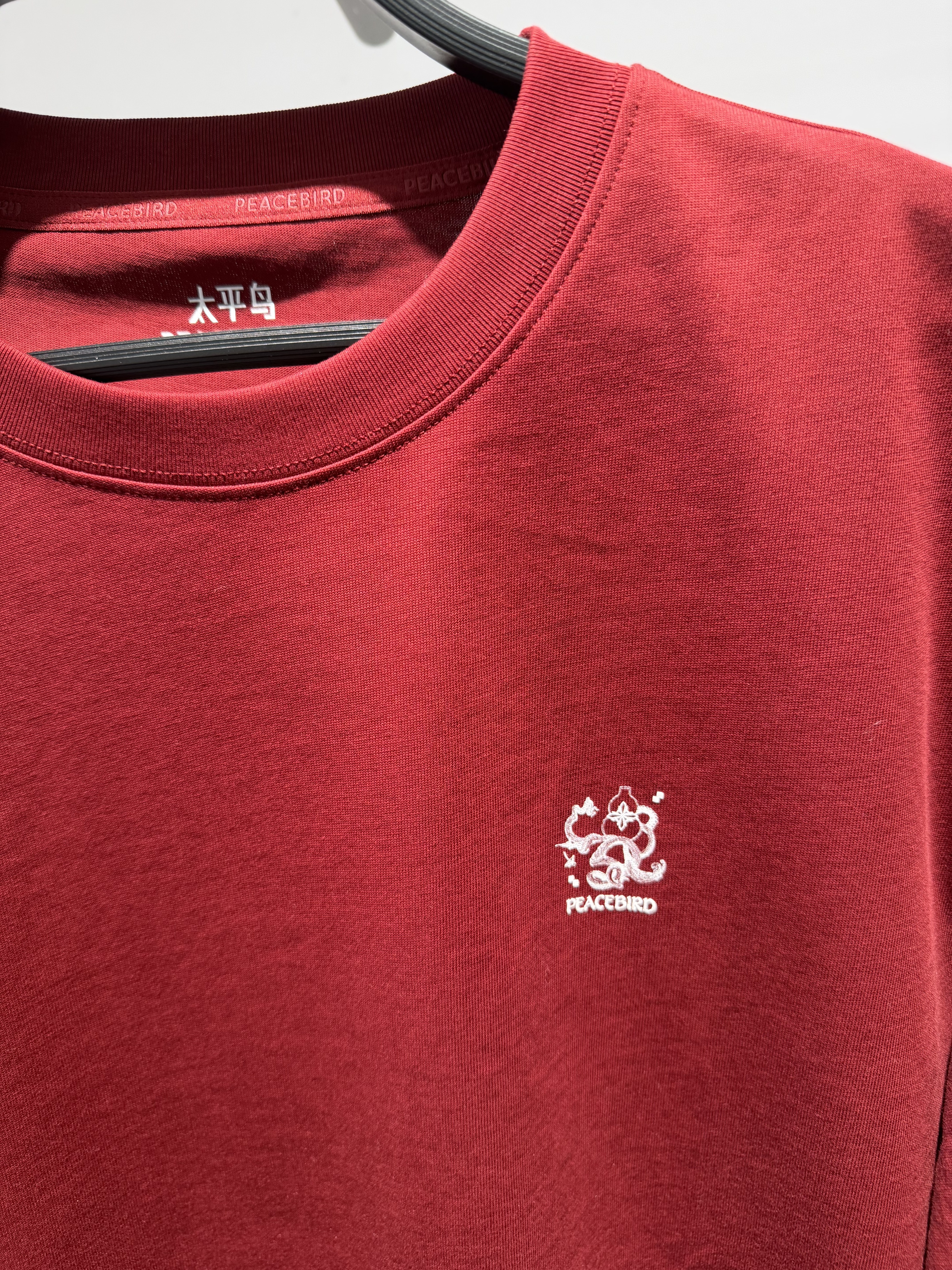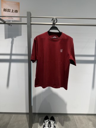 B2CNG1122 太平鸟男装2026春季新款红色圆领宽松休闲短袖印花T恤