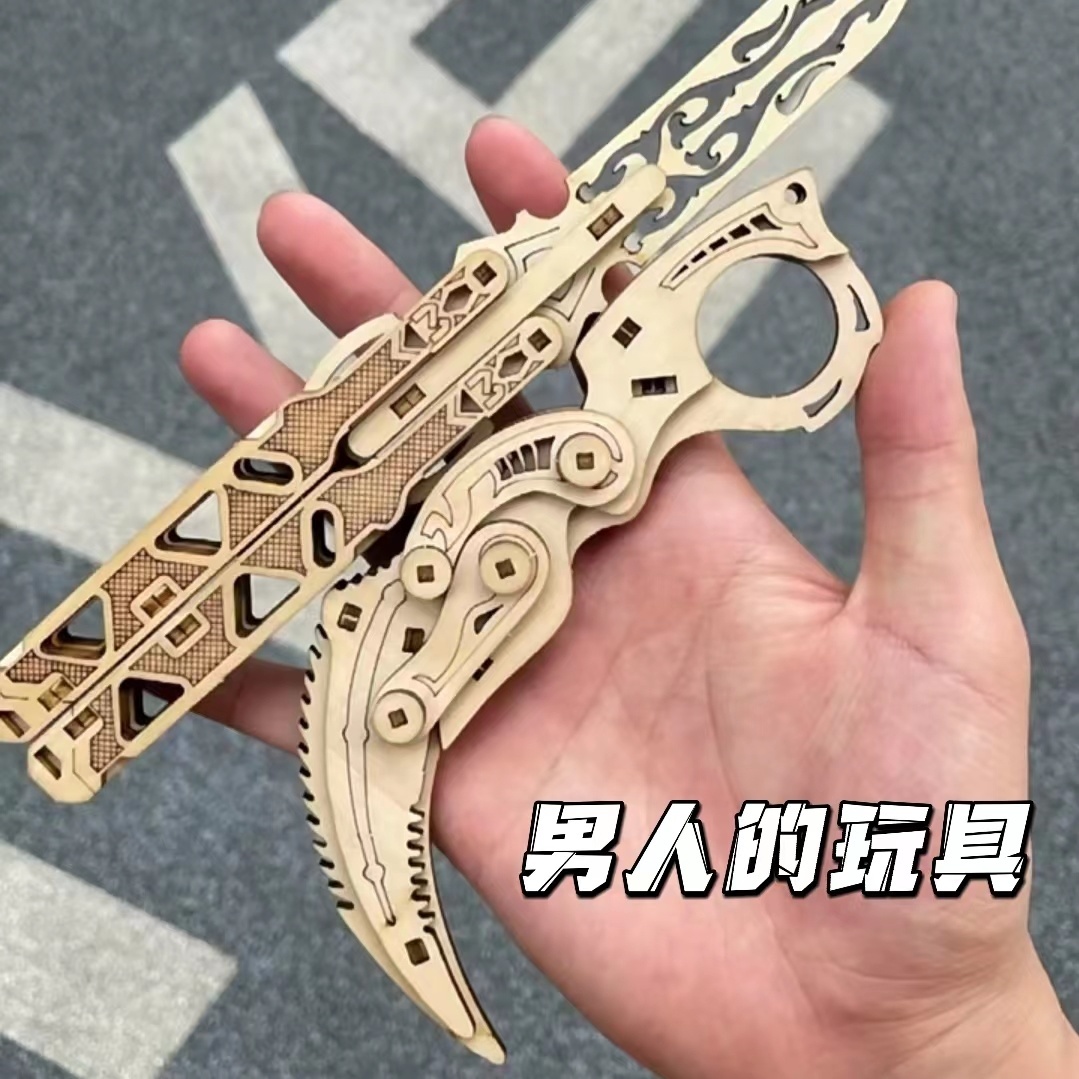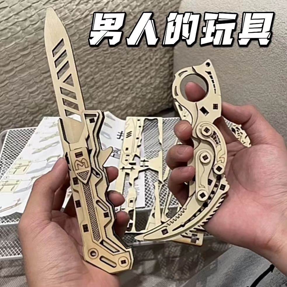 木质拼装模型刀蝴蝶爪刀9木制刀剑10岁男生3d立体拼图积木木头12