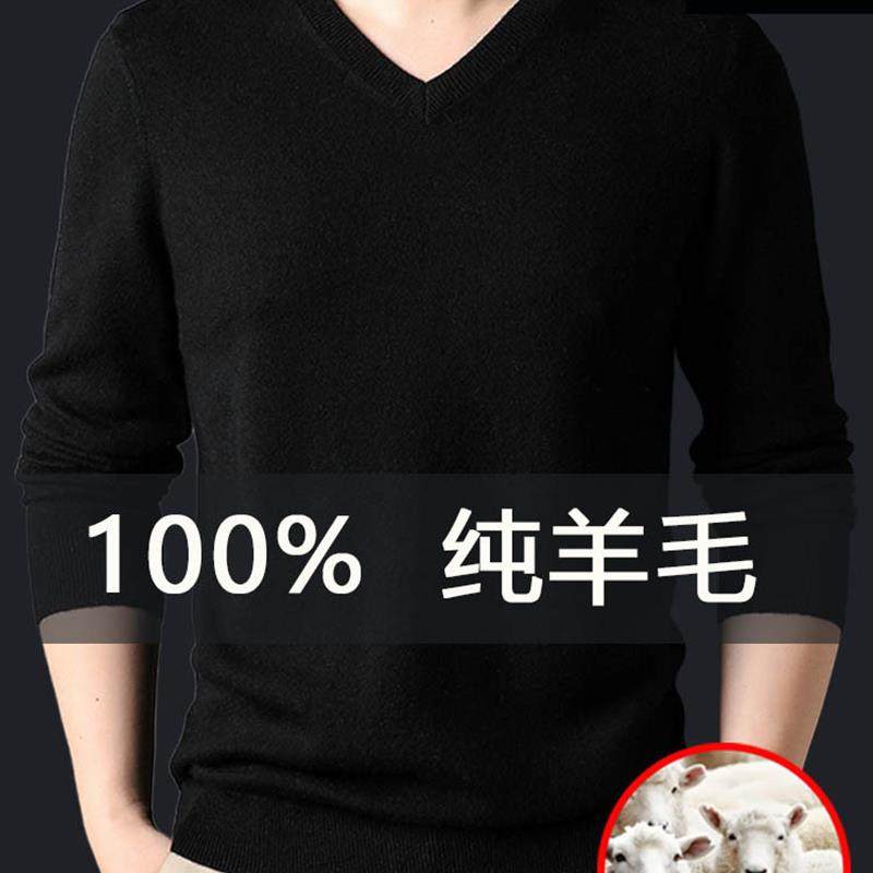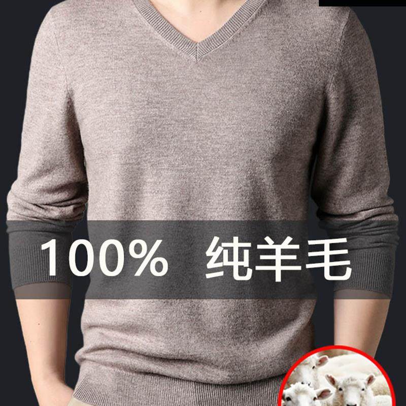 恒源祥100%羊毛衫V领男士25年秋冬季新款纯色新款长袖打底衫毛衣