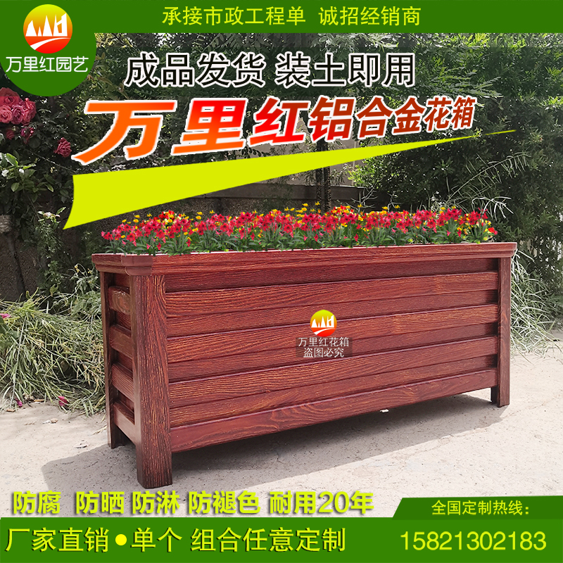 定制仿木纹铝合金花箱户外组合道路隔断花槽花坛庭院阳台种植箱
